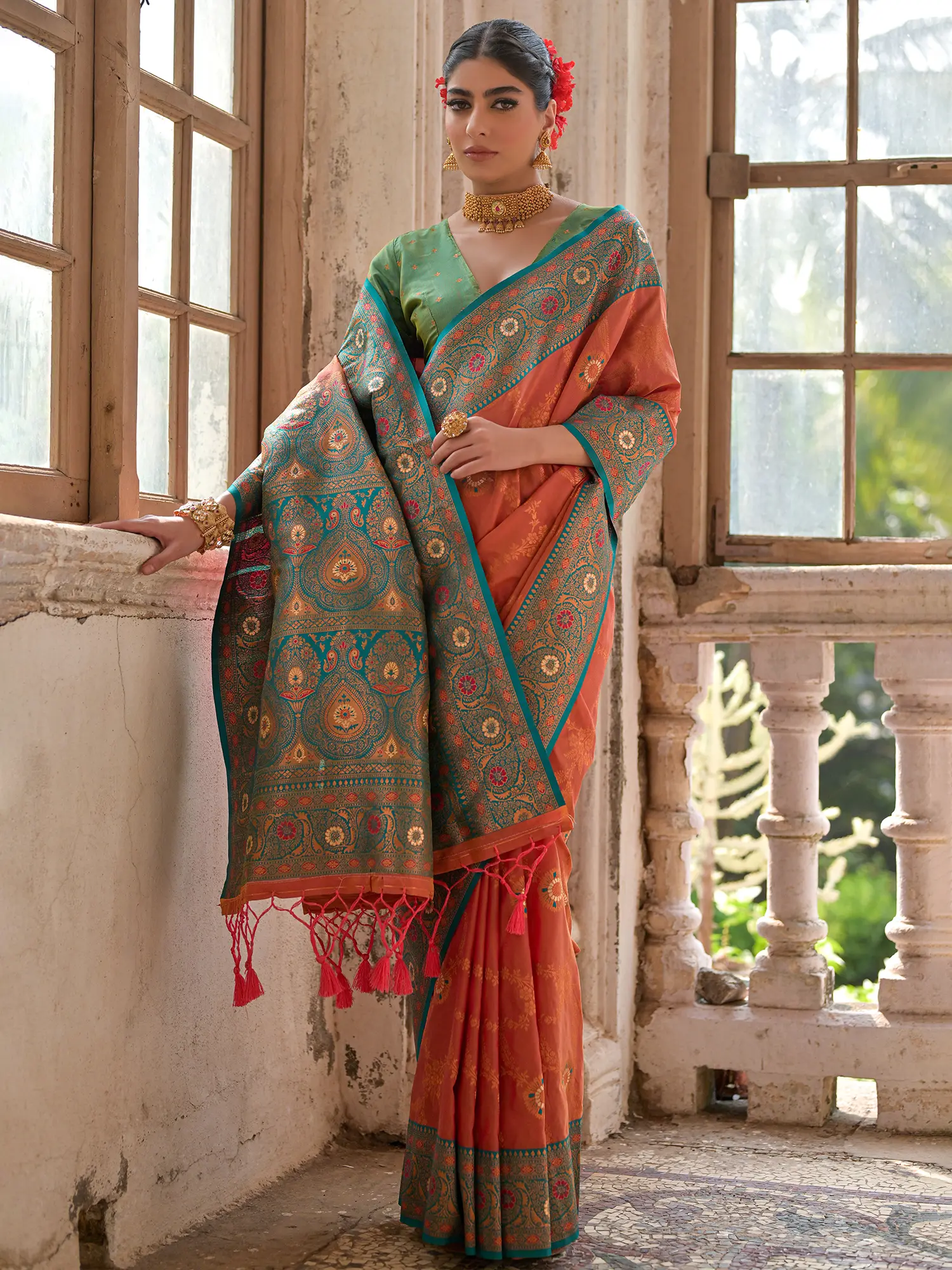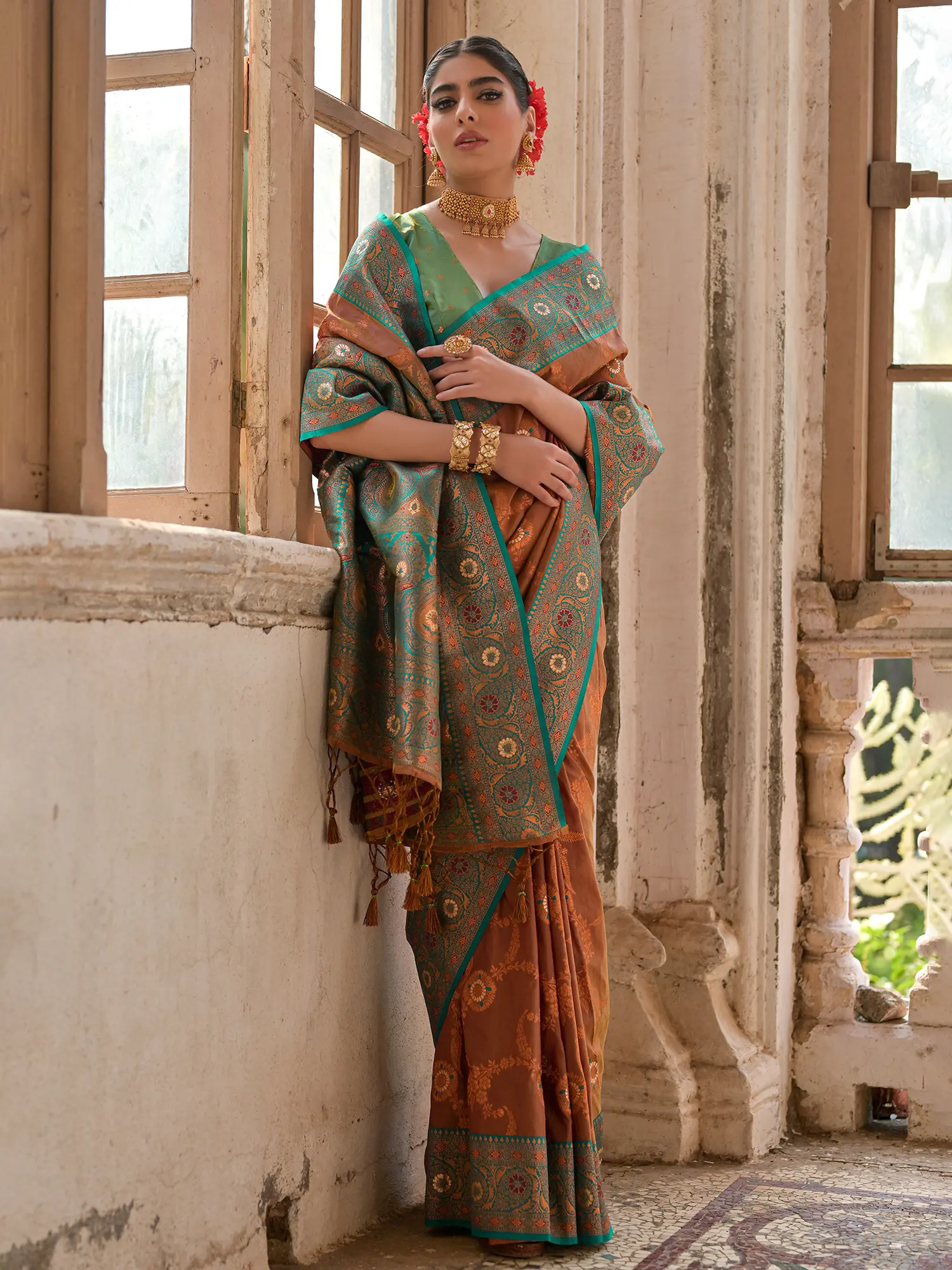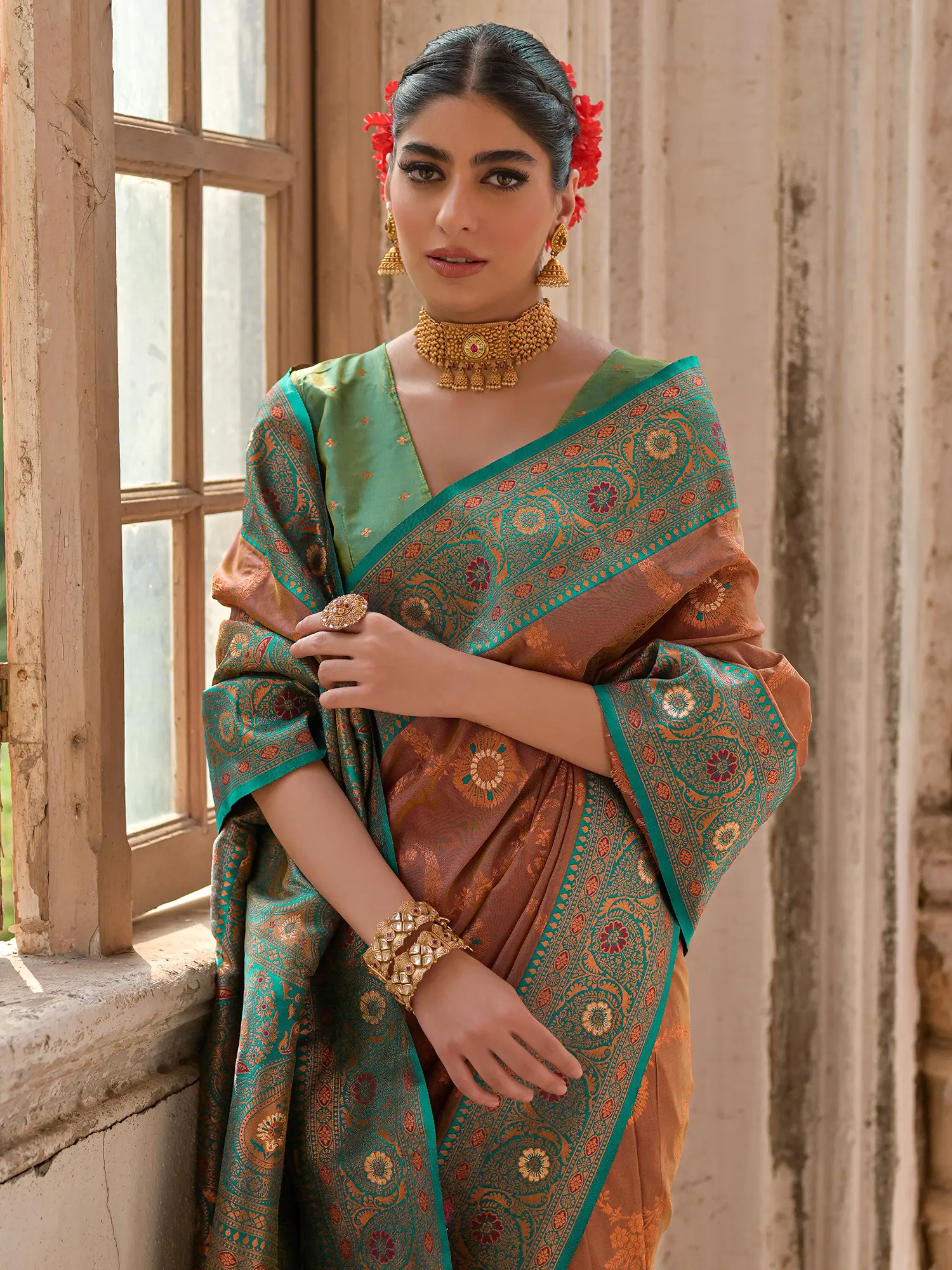 Beach-Glass Pure Silk Banarasi Saree with Zari Brocaded Floral Butta and Paisley Border