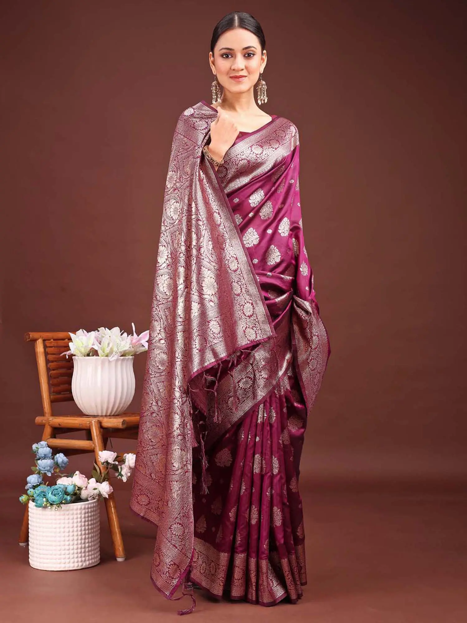Crafted from premium Banarasi silk for a luxurious sheen and comfortable drape.