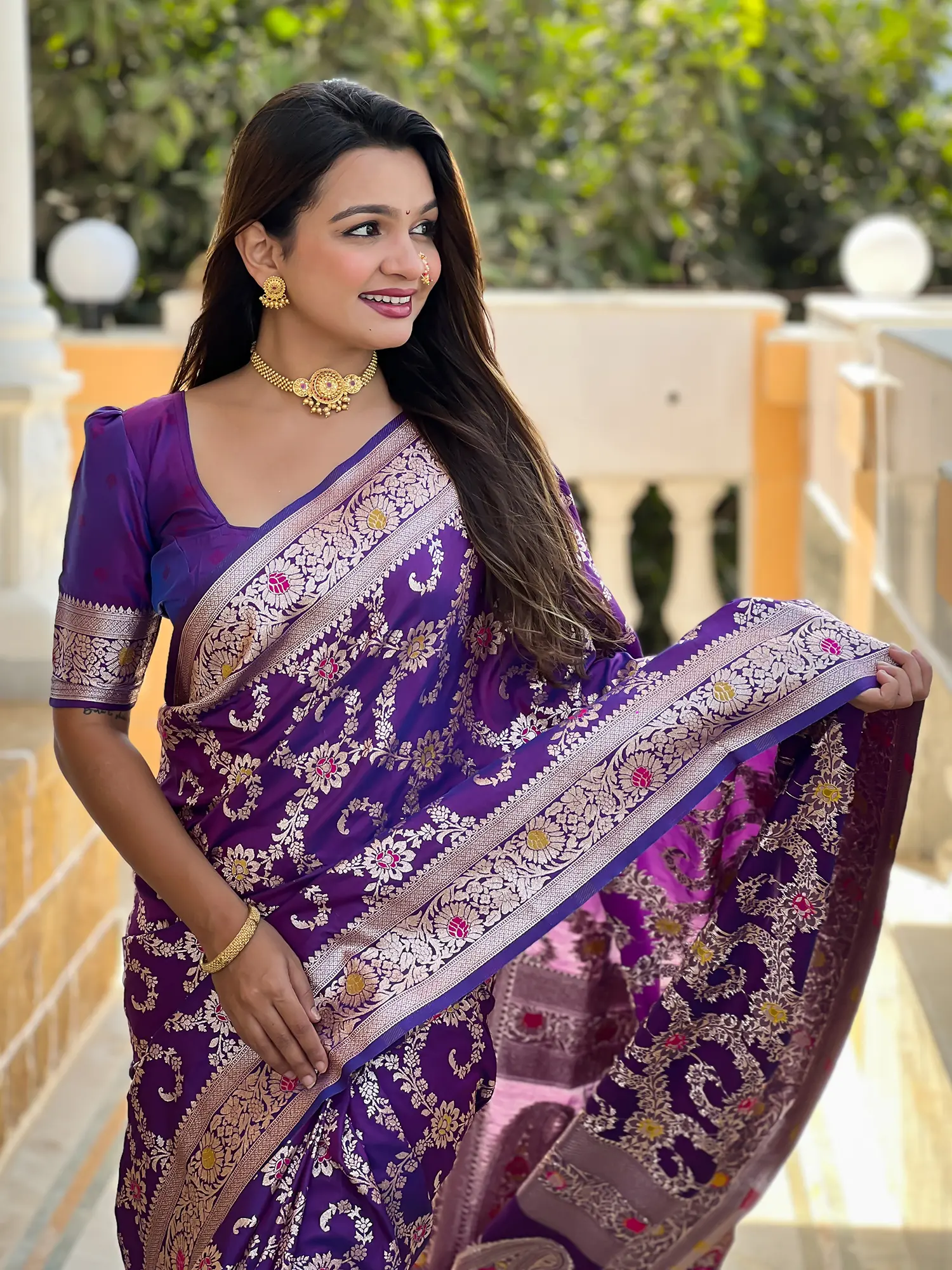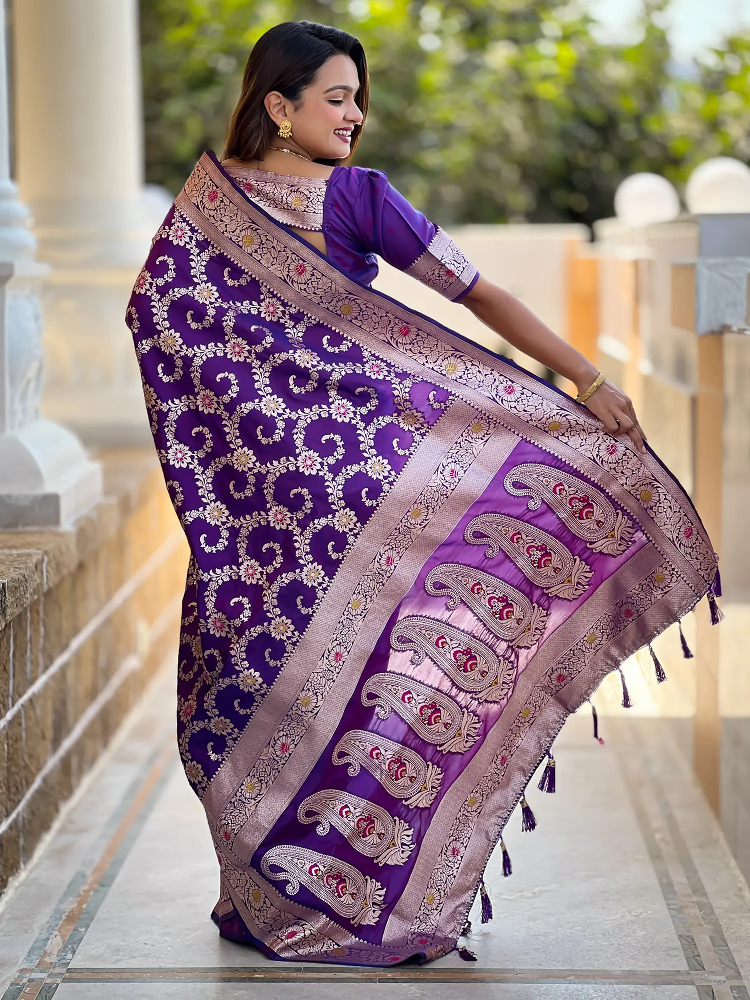 Crafted from soft Banarasi silk for a luxurious drape and feel.