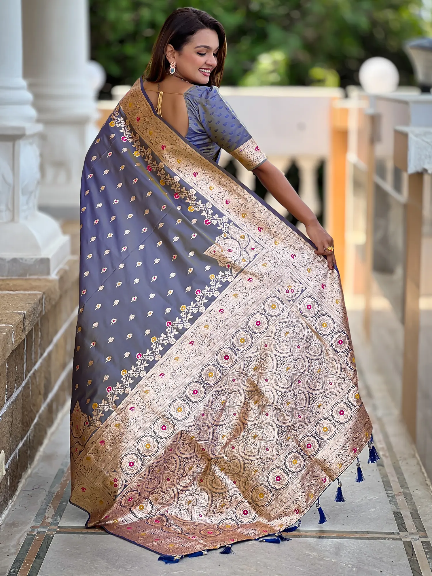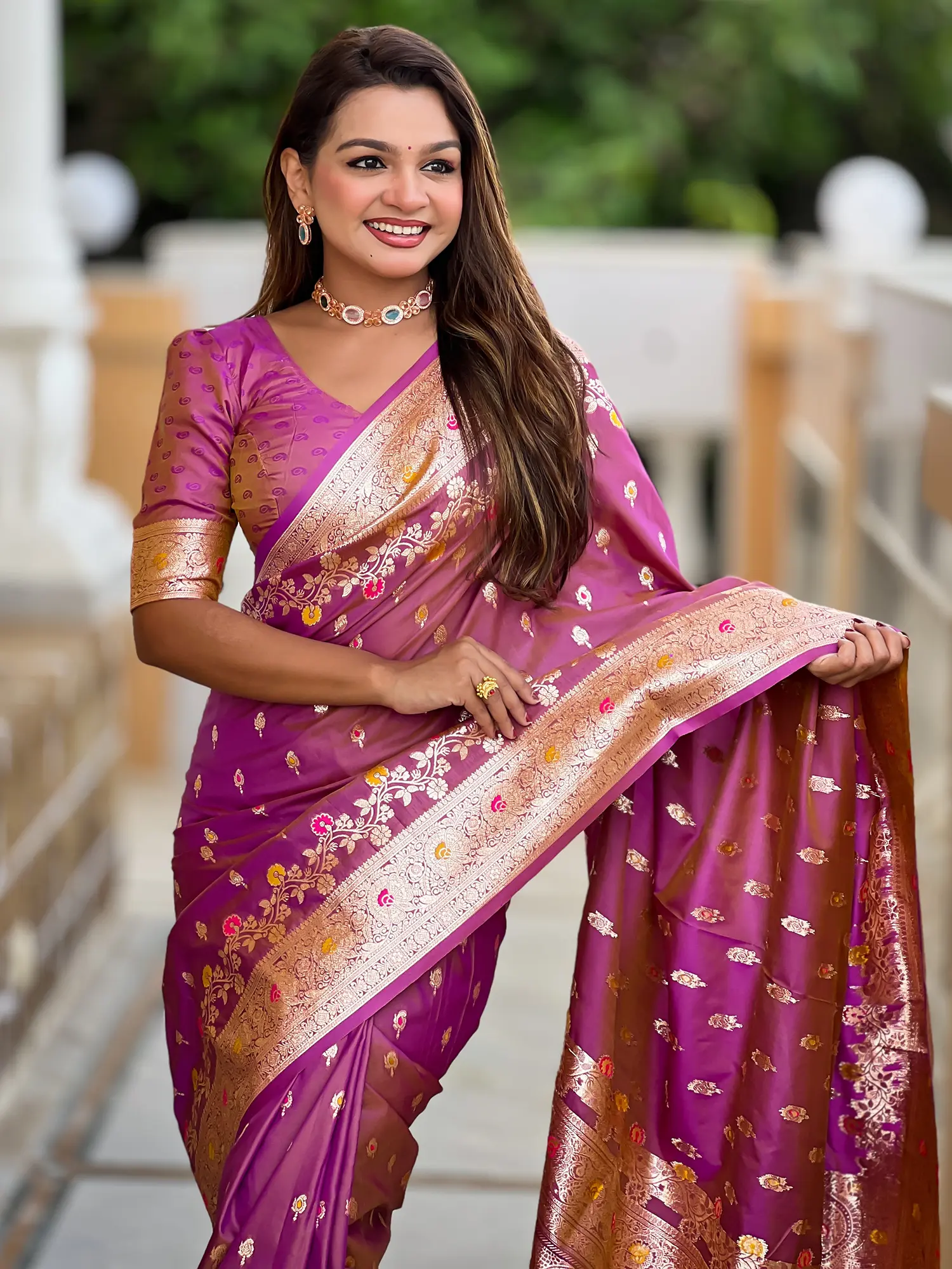 Crafted from pure Banarasi silk, handwoven by master artisans using time-honored techniques.