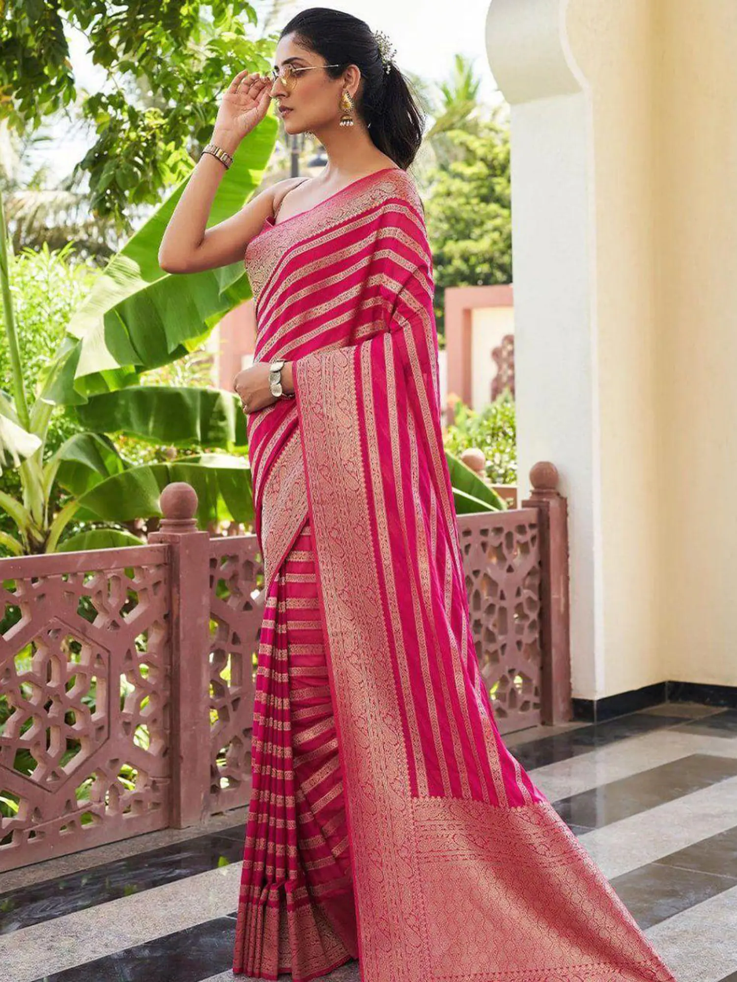 Stripes Woven Art Silk Saree from Banaras with Zari Border