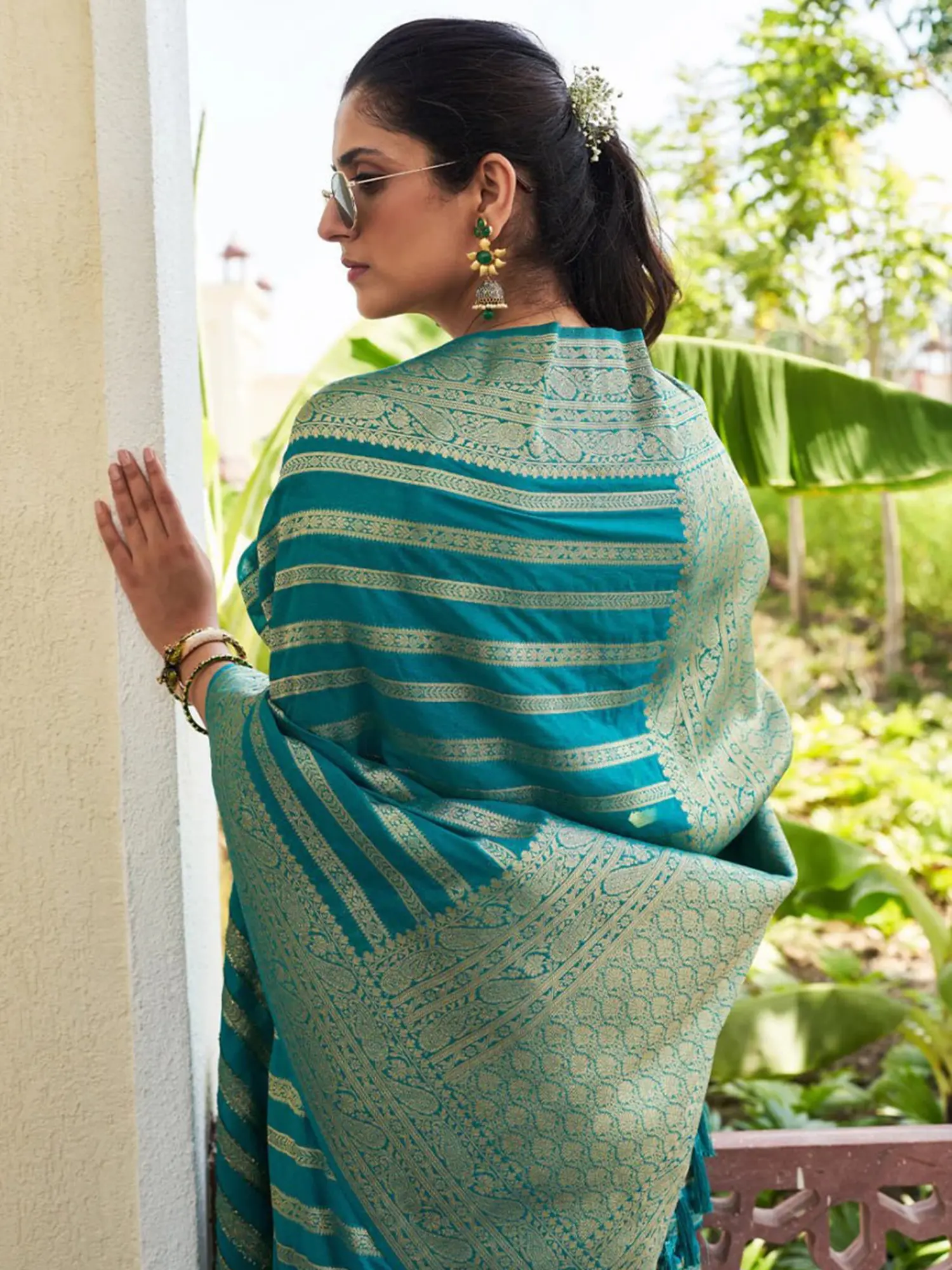 Greener Pastures Banarasi Silk Handloom Saree with Tassel Pallu