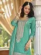 Attractive Embroidery And Sequins Work Chinon Silk Kurti Sharara Set