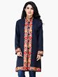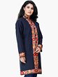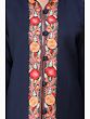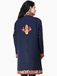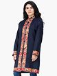 Classic-Blue Wool Long Jacket with Aari Embroidered Leaves Jaal