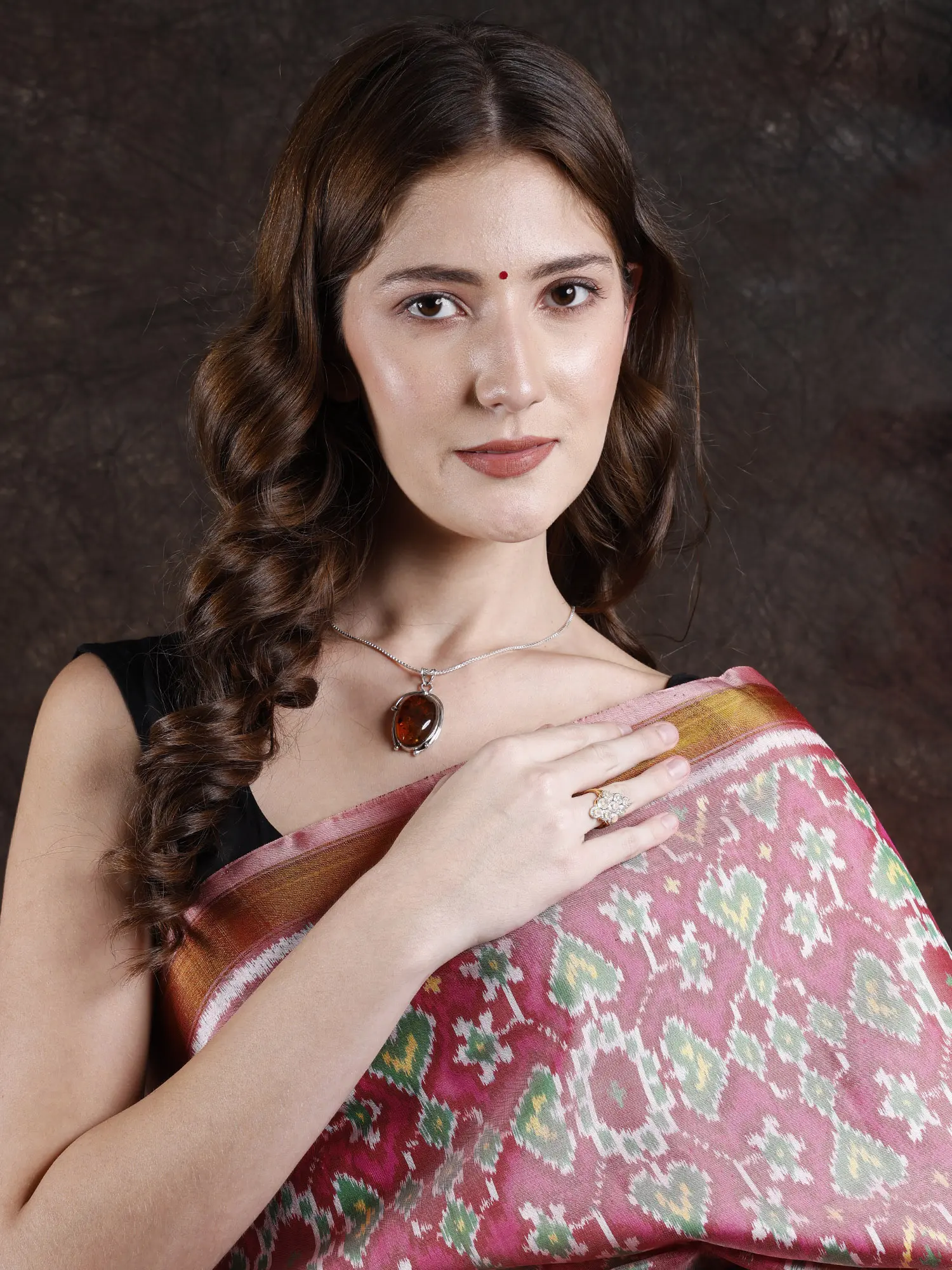 Immerse yourself in the timeless artistry of Gujarat with this meticulously crafted handloom saree. Woven from the finest pure silk, this piece is a vibrant celebration of the renowned Patan Patola Ikat technique, a craft steeped in centuries of tradition and intricate detail. The rich, rose-hued silk serves as a canvas for a symphony of patterns, each motif painstakingly created through the complex process of tie-dyeing the threads before weaving. This ensures that the vibrant colors and sharp designs are inherently part of the fabric, a true testament to the weaver's skill.