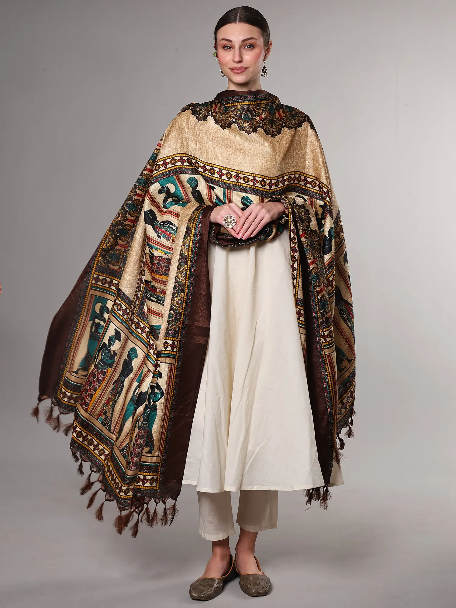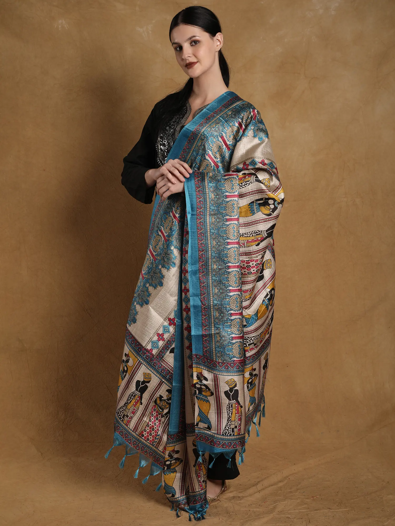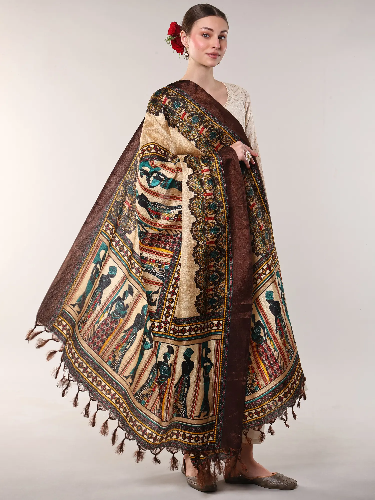 Batik Afro Women Motif Printed Banglori Satin Dupatta, a fusion of tradition and contemporary artistry. Crafted from luxurious Banglori satin, this dupatta features an inspiring Afro-women motif, celebrating empowerment and cultural diversity. Batik, an ancient resist-dye technique, is reinvented here, marrying tradition with modern designs. The vivid colors and intricate patterns resonate with current fashion trends. Skilled artisans meticulously print each motif, and the tassel details add a playful touch. This precious accessory embodies a rich cultural narrative, making it a cherished addition to your wardrobe.