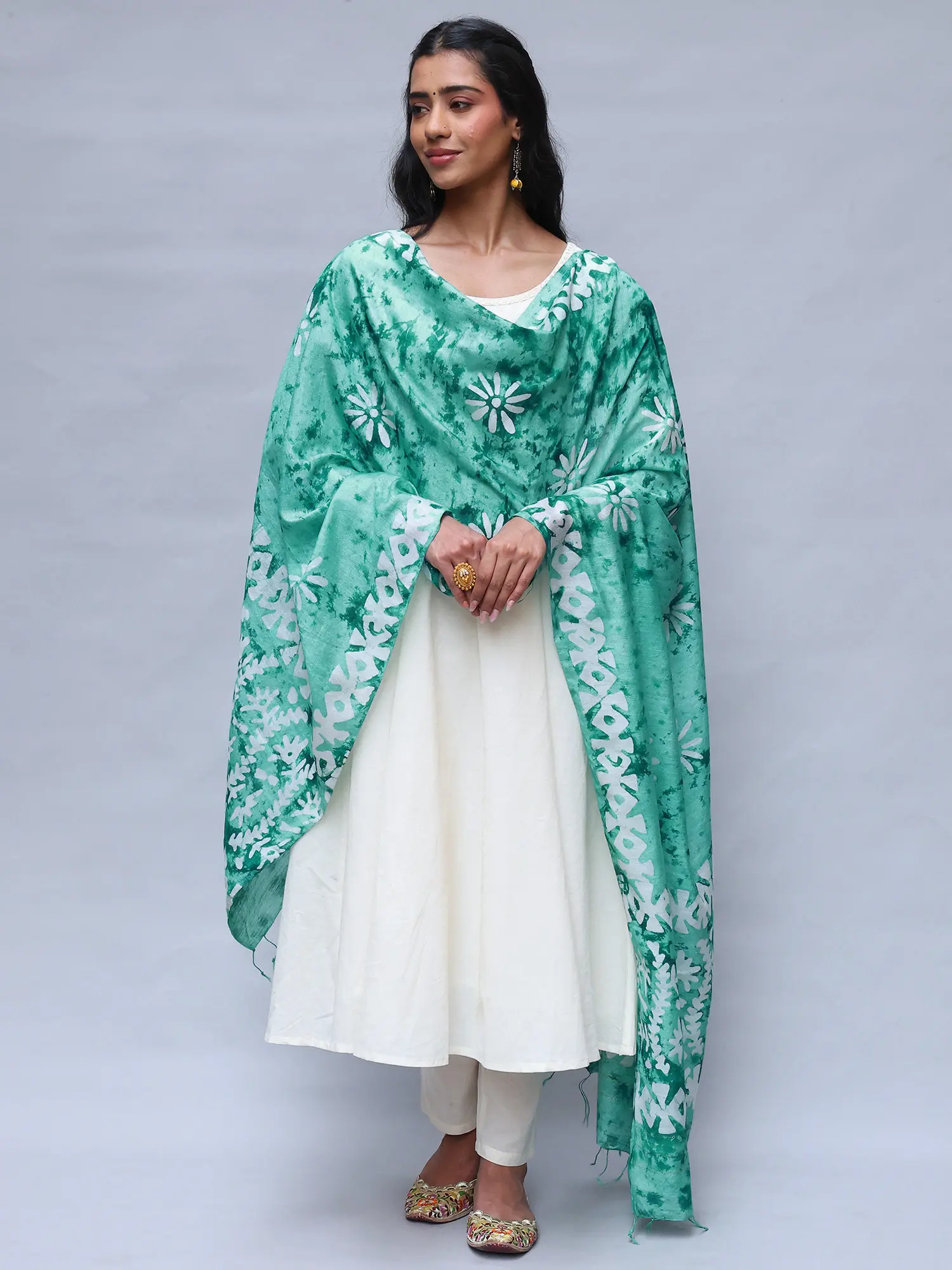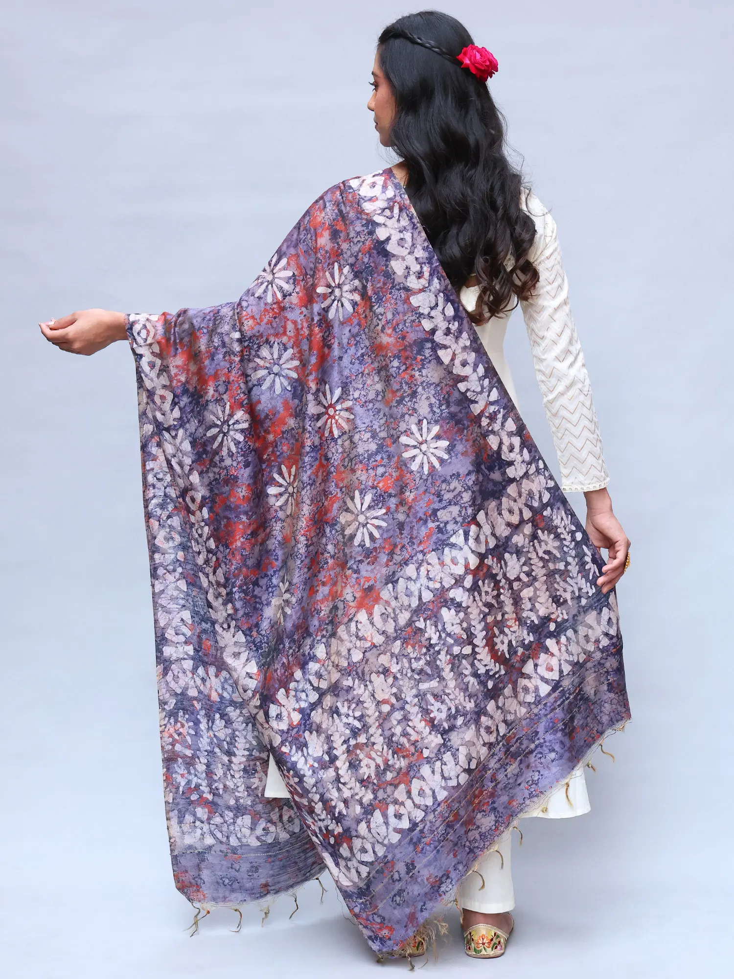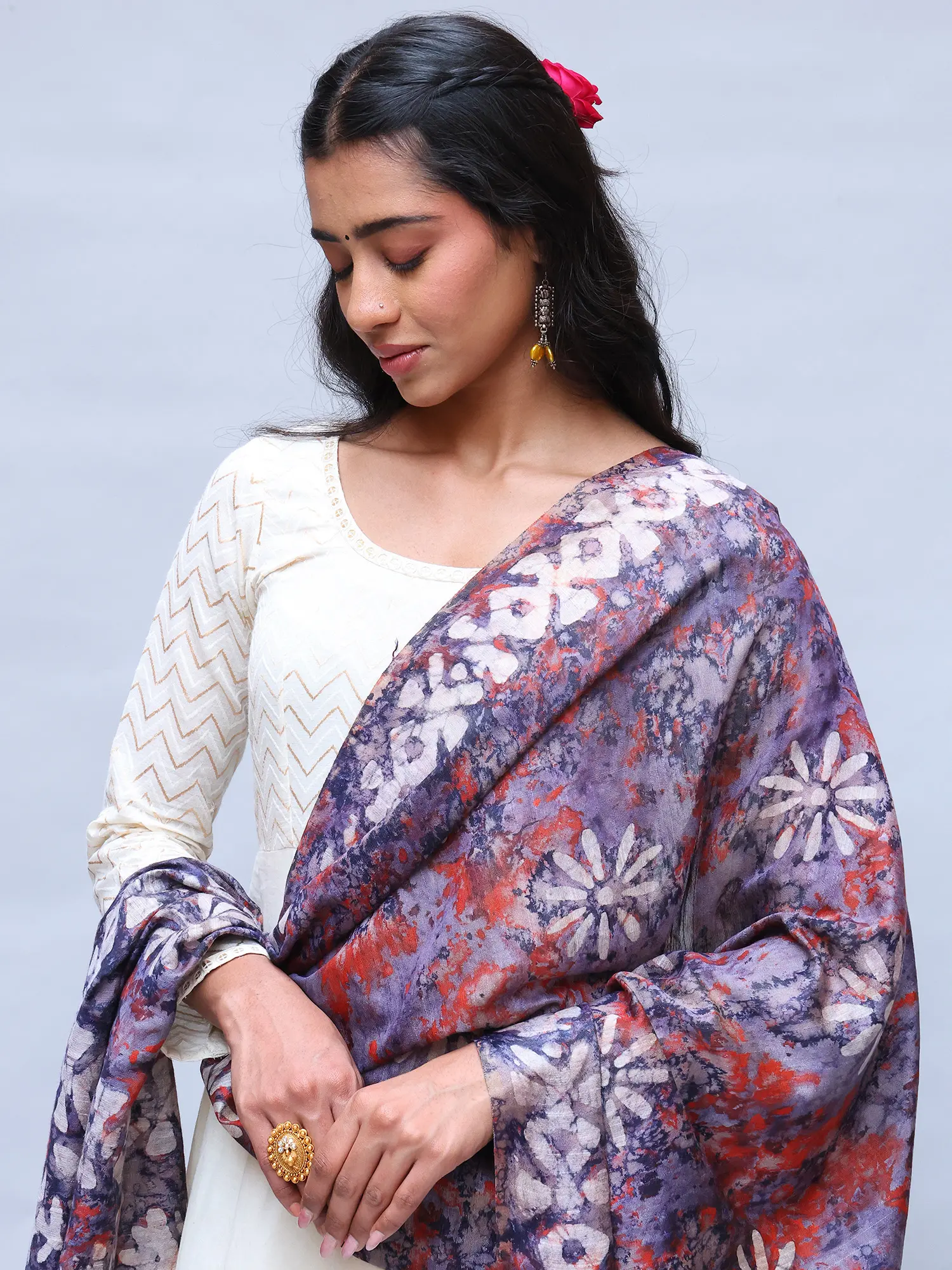 Digital Printed Multicolor Stole Depicting Countryside Meadow