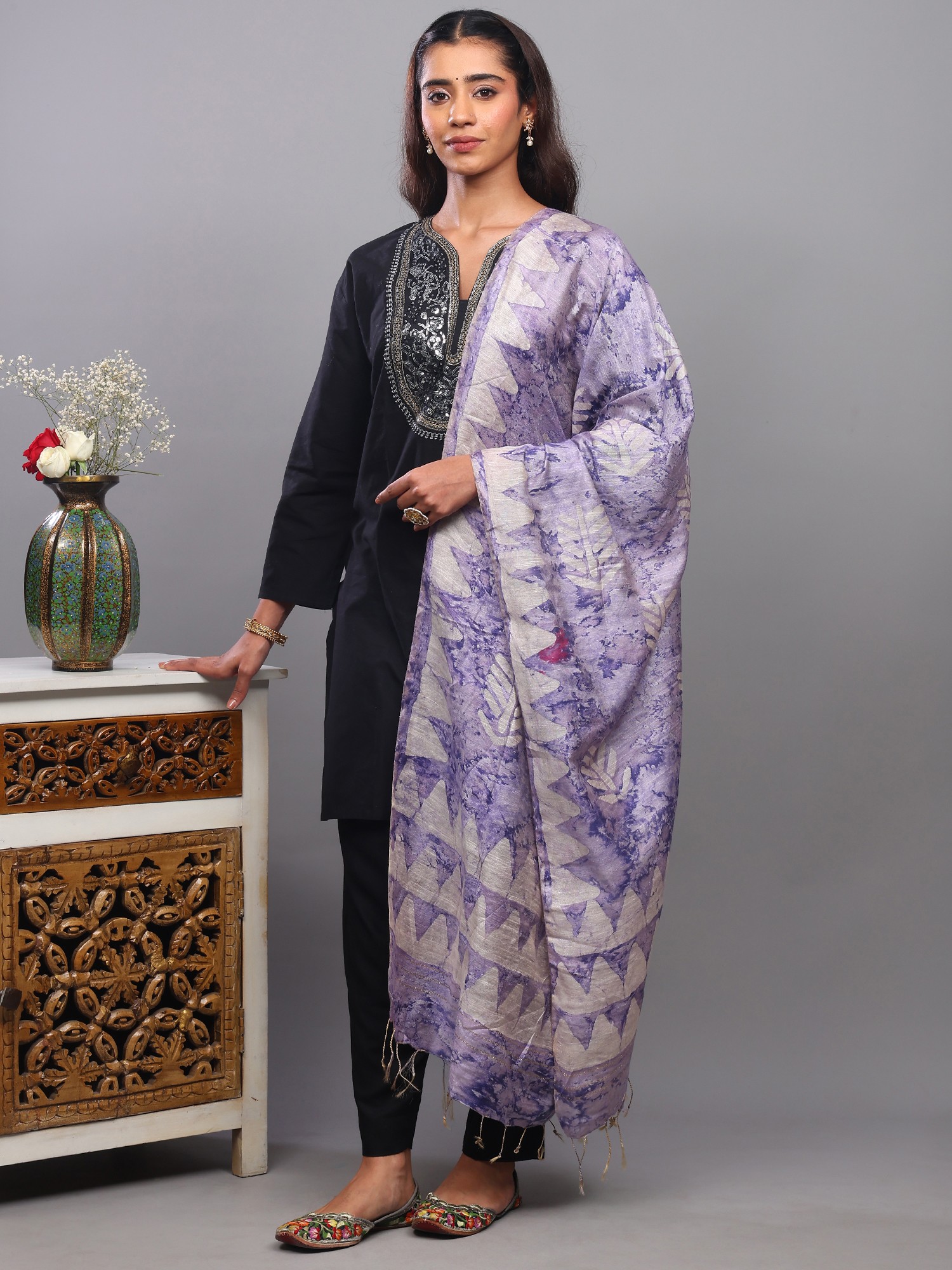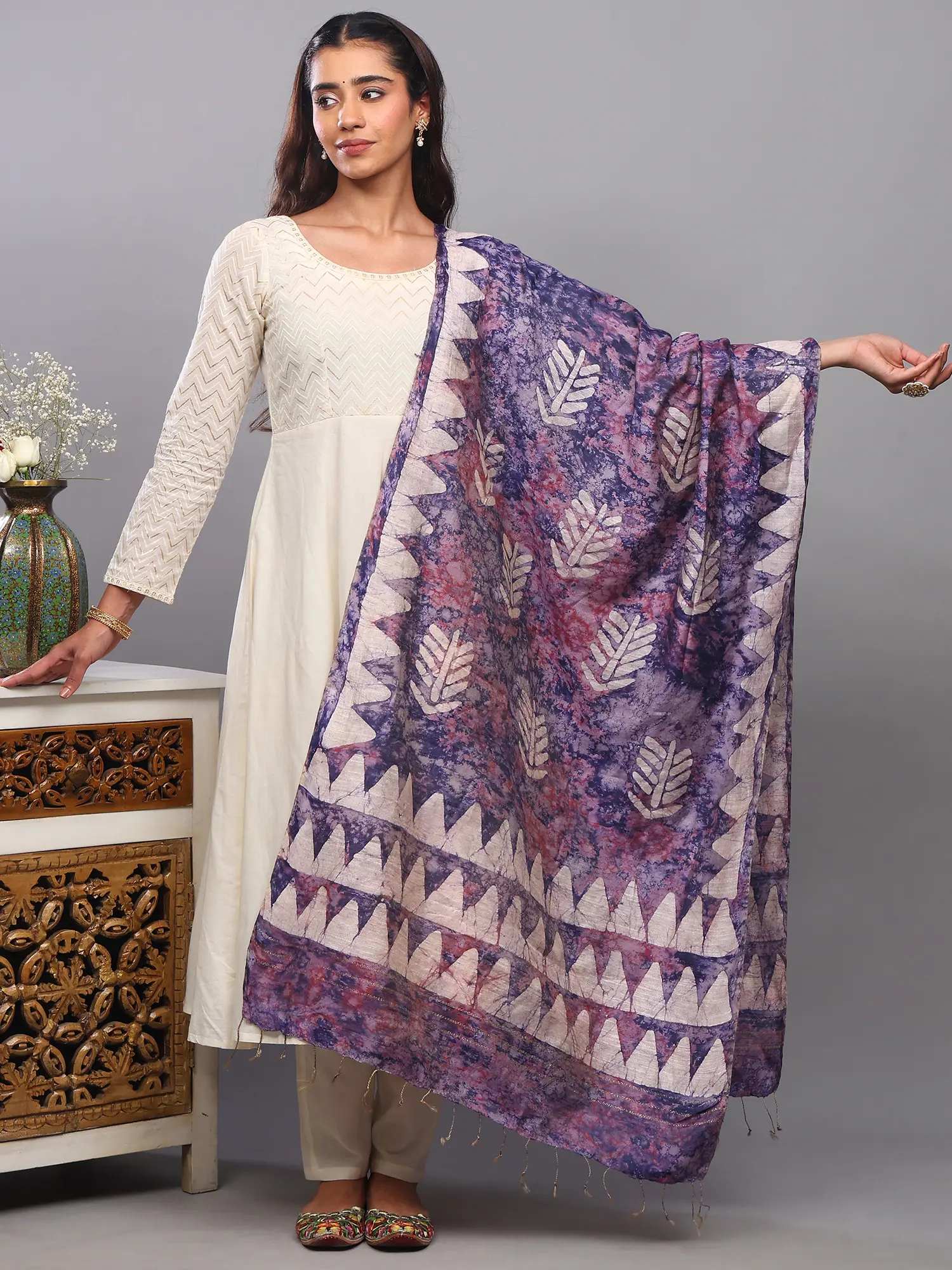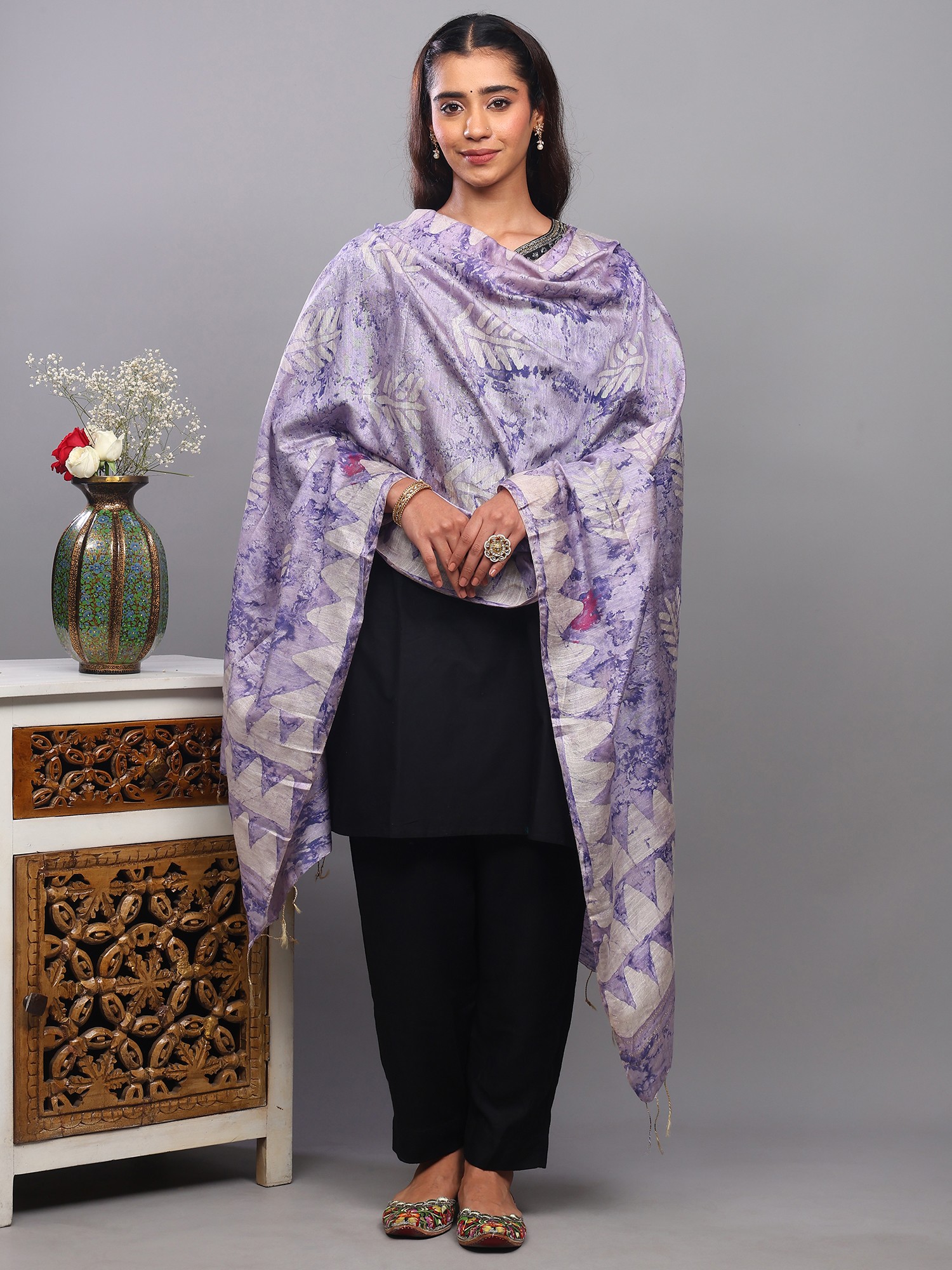 Art Silk Dupatta with Printed Warli Folk Art Motifs