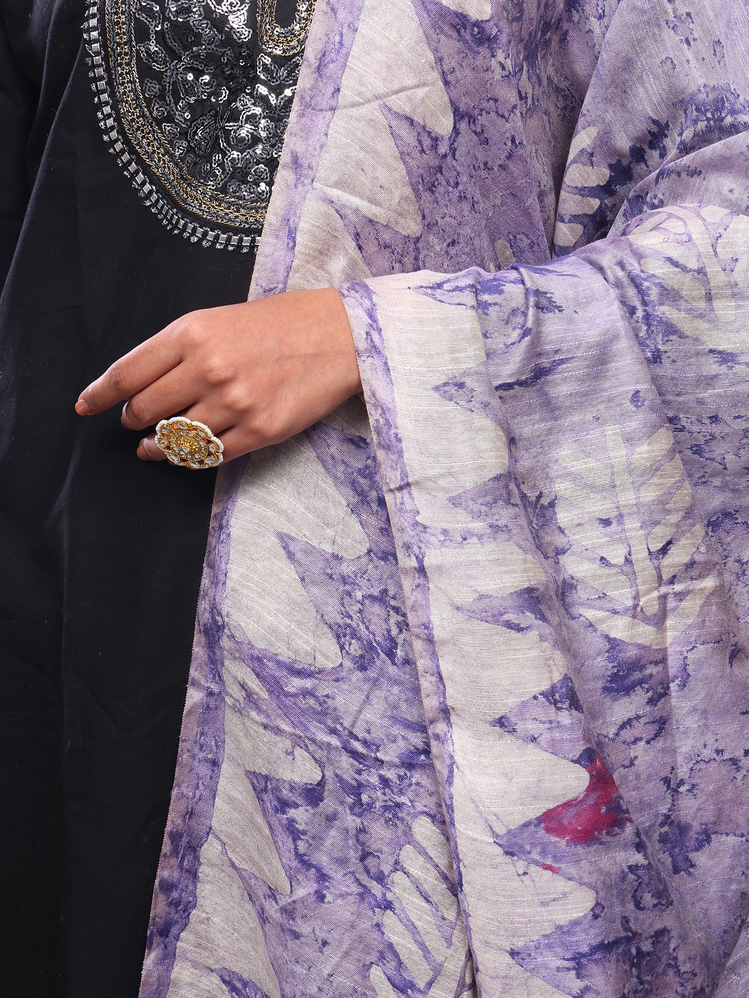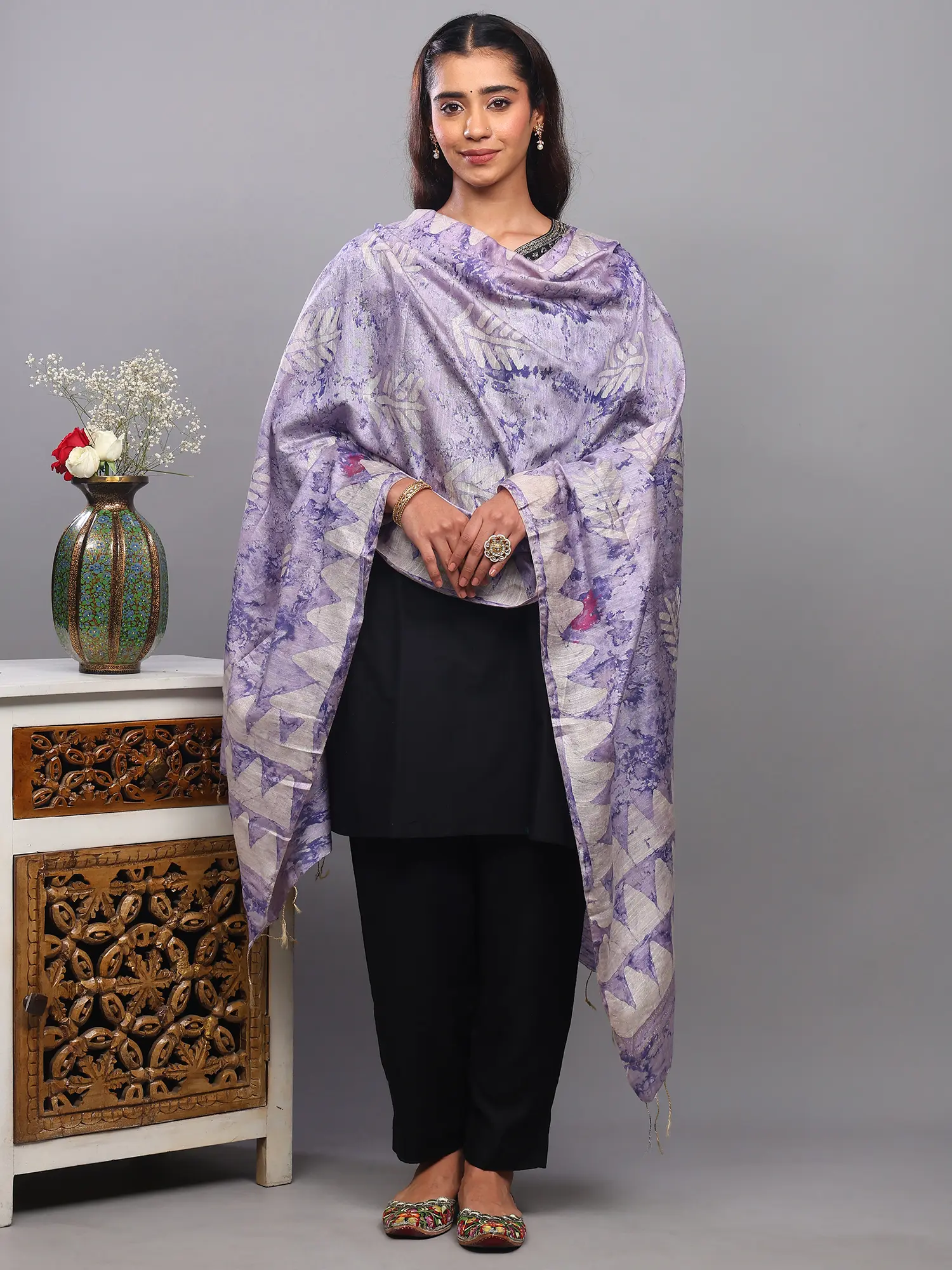 Art Silk Maple Leaf Printed Dupatta with Tassels