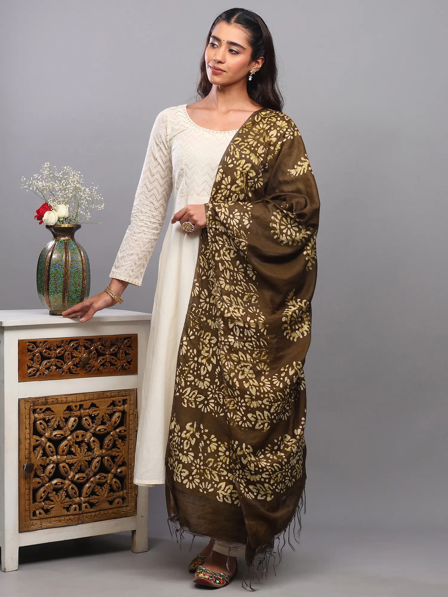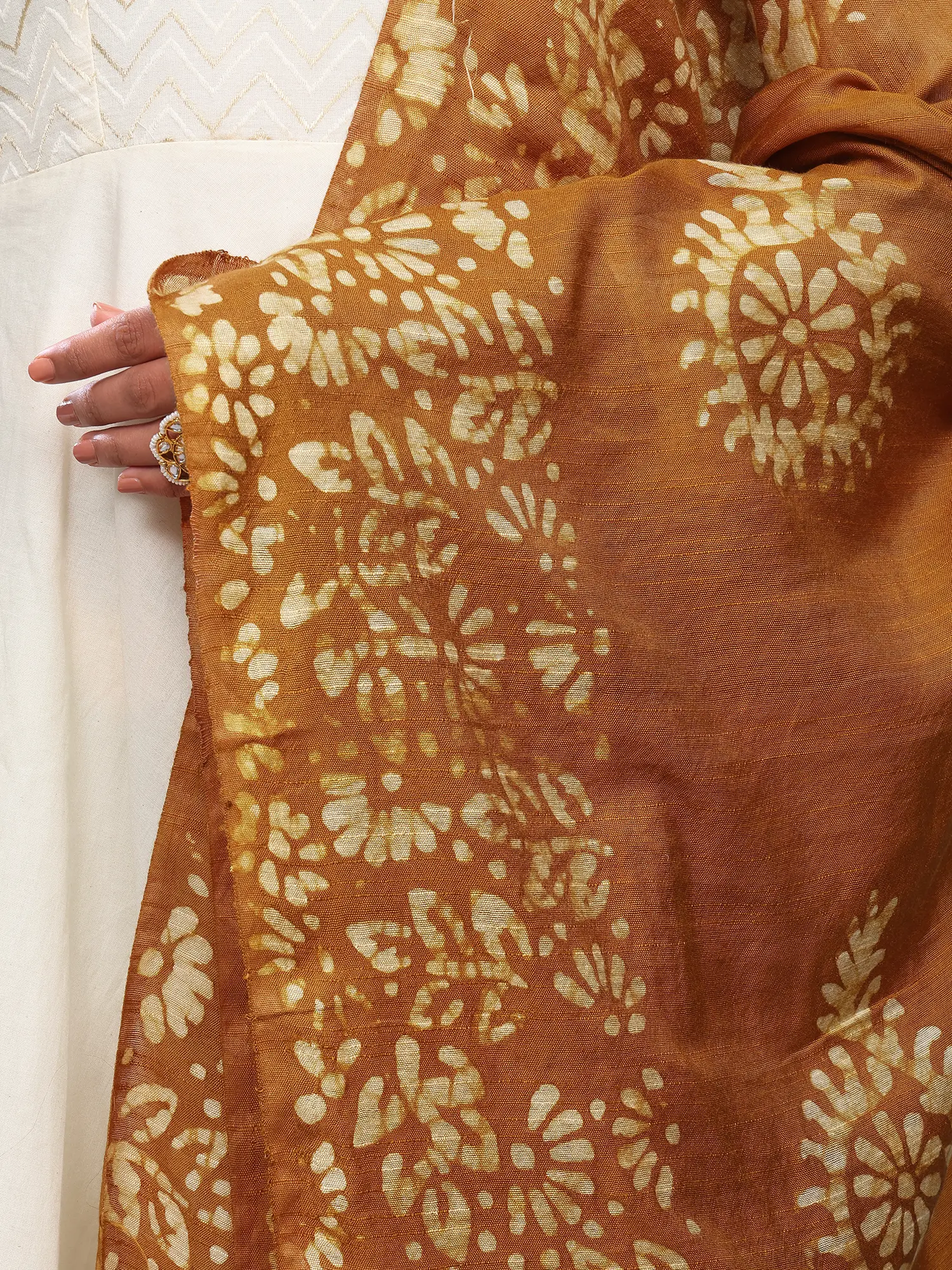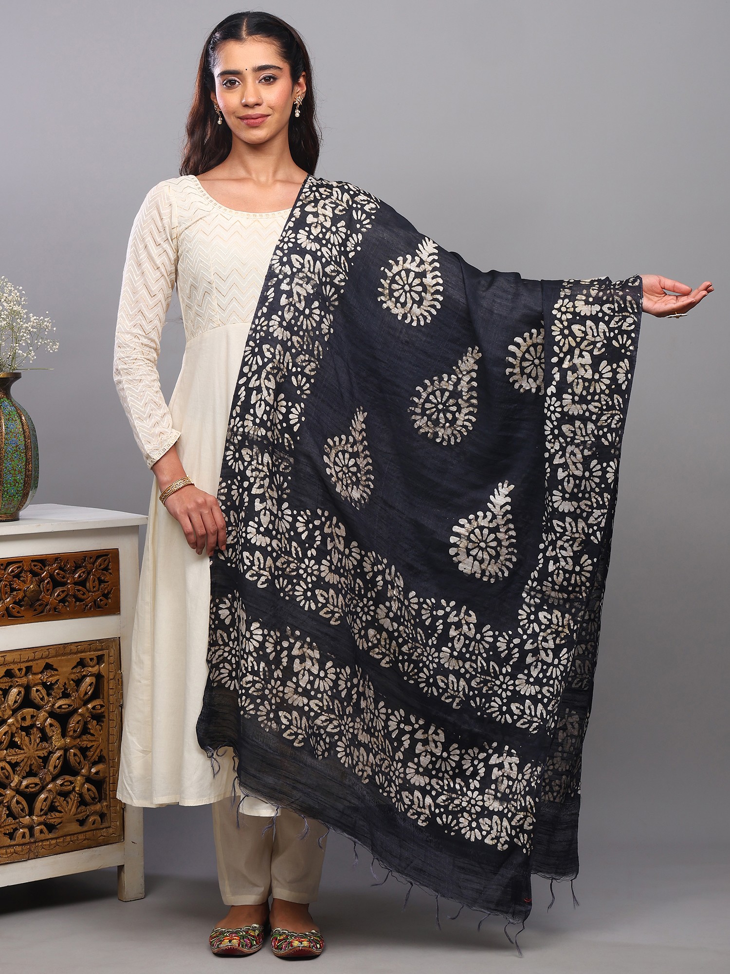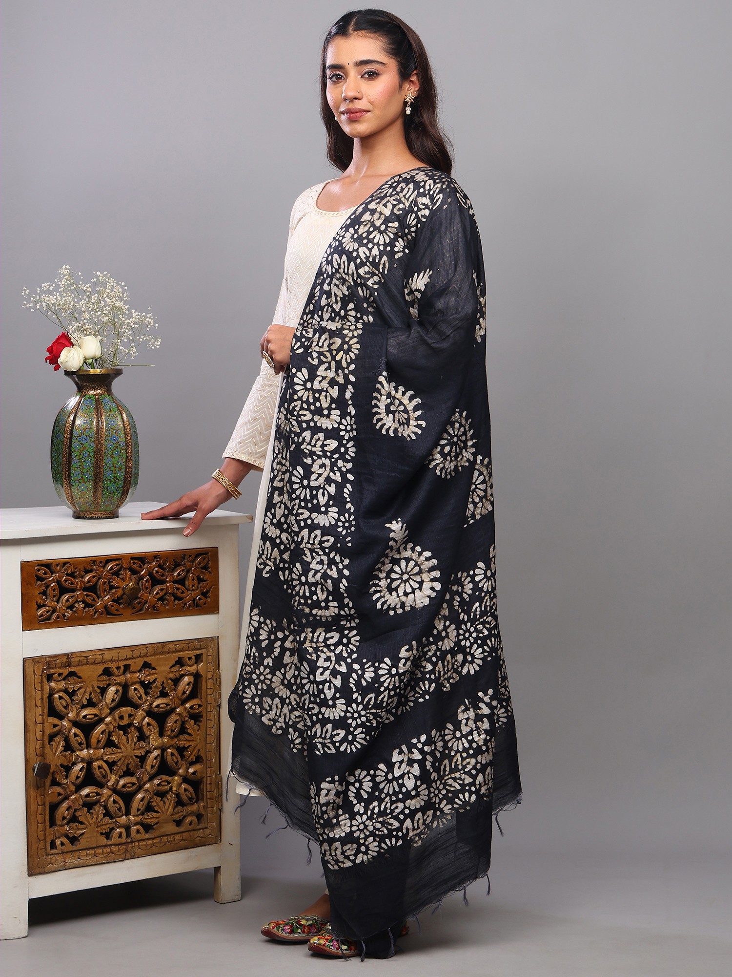 Batik Printed Chakra Pattern Art Silk Dupatta from Telangana