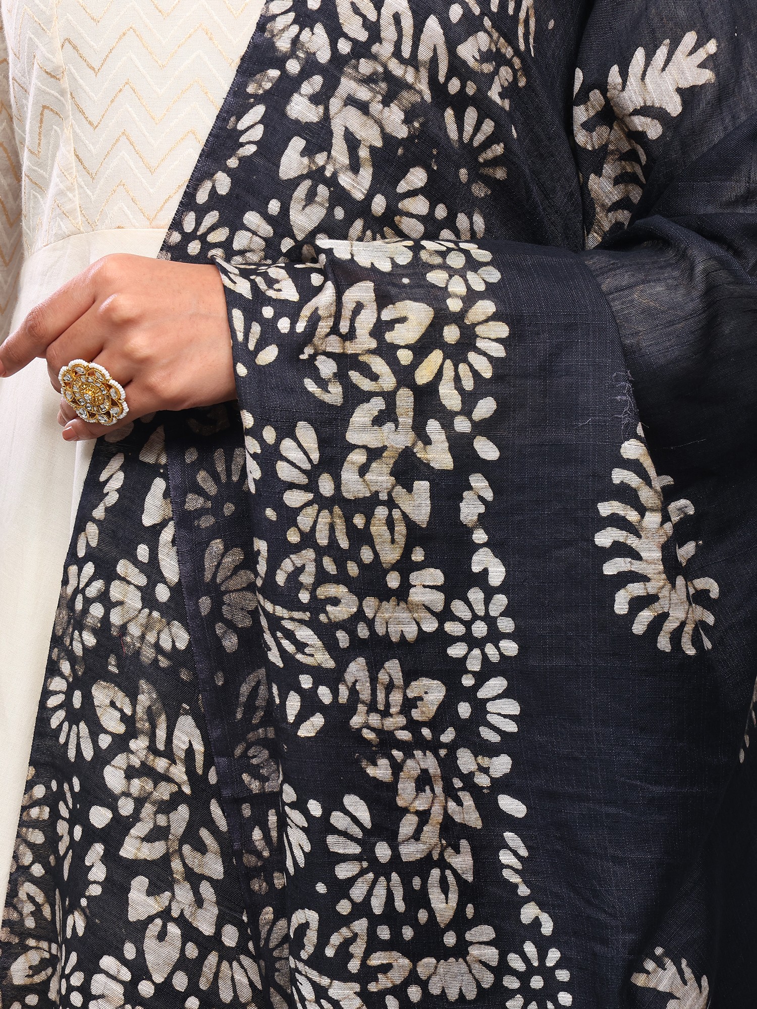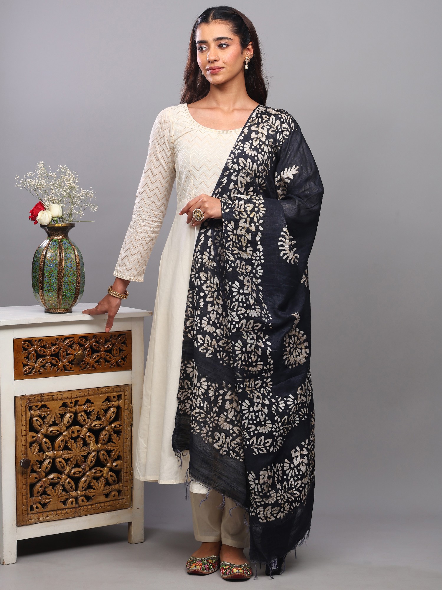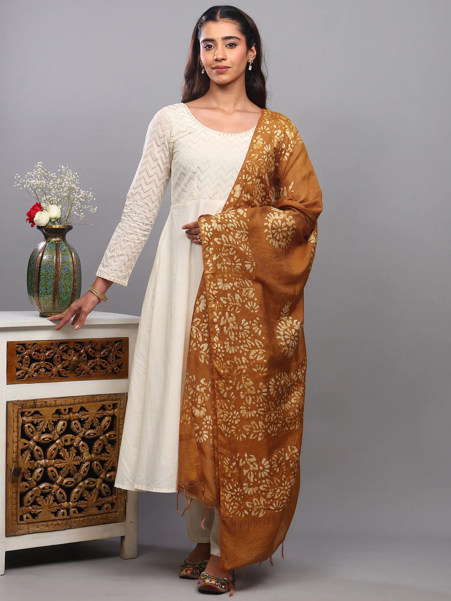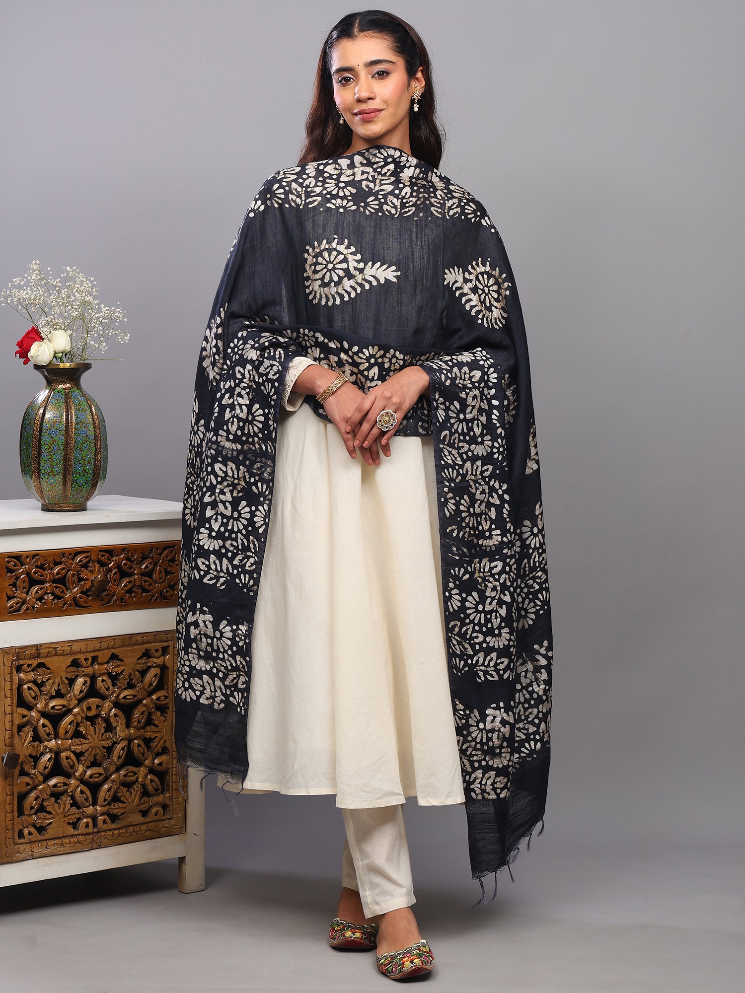 Batik Printed Chakra Pattern Art Silk Dupatta from Telangana