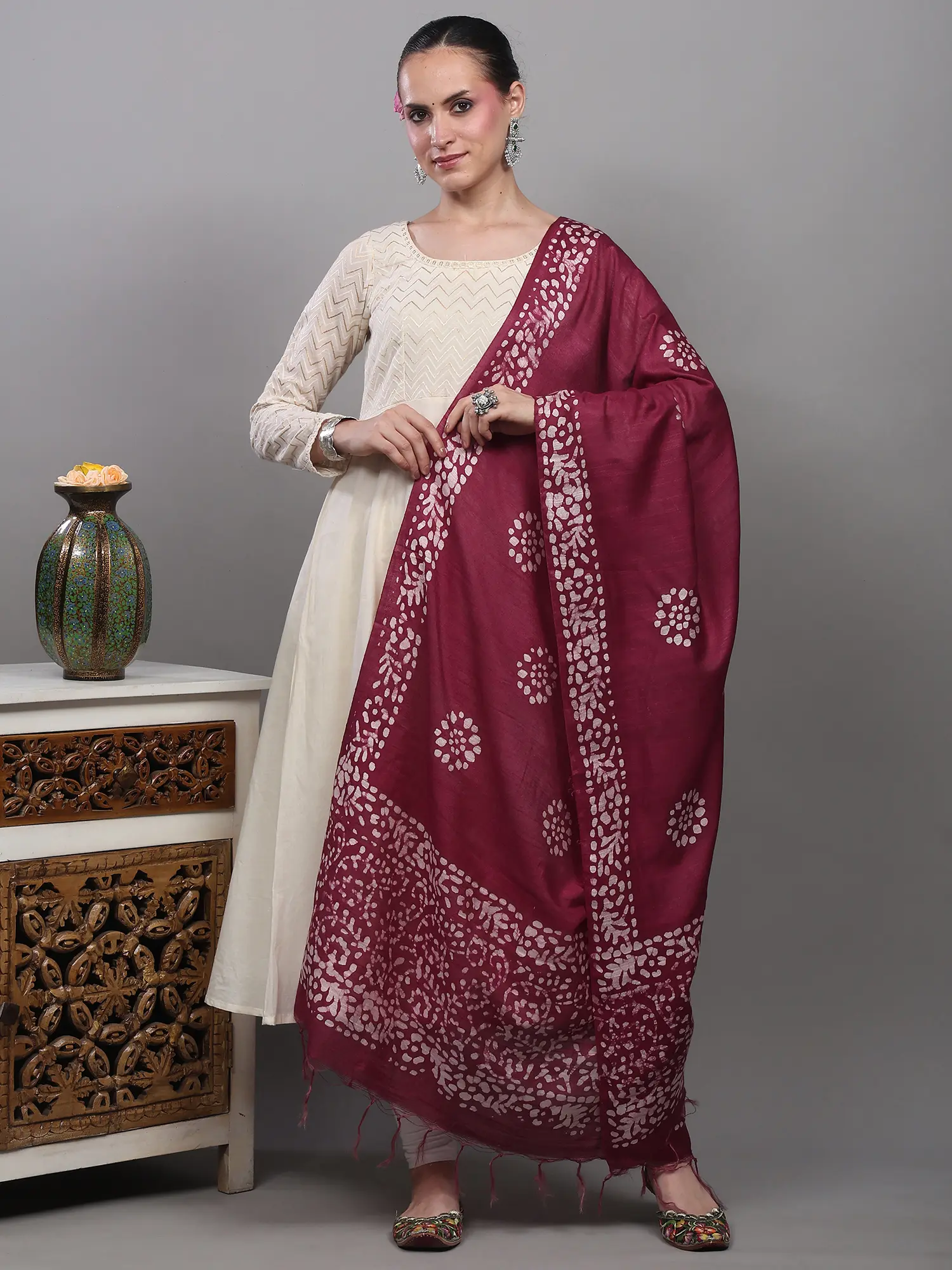 Art Silk Maple Leaf Printed Dupatta with Tassels