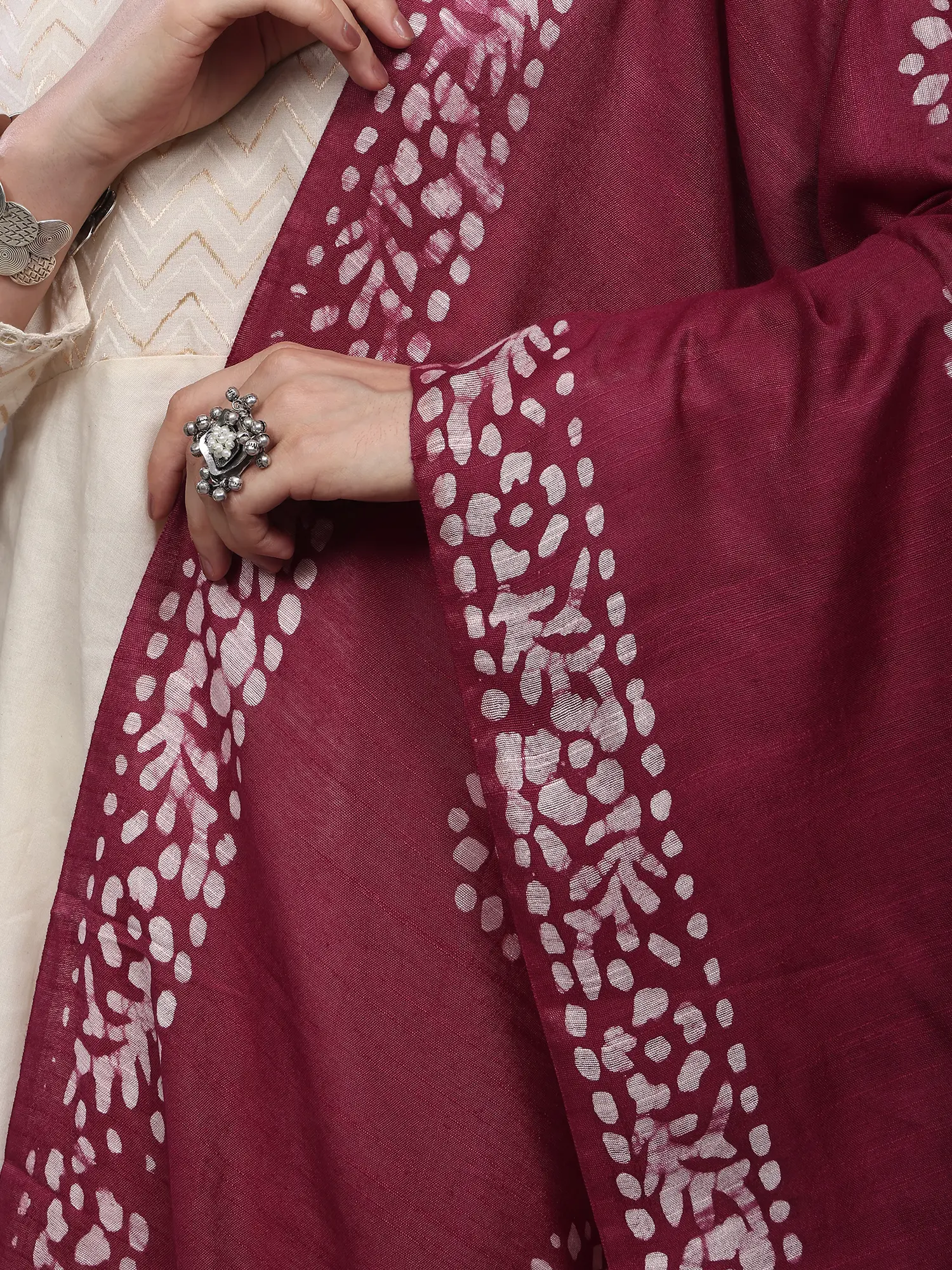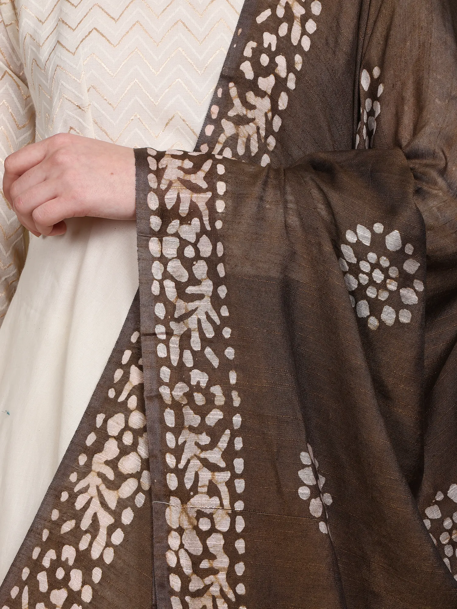Art Silk Dupatta with Printed Warli Folk Art Motifs