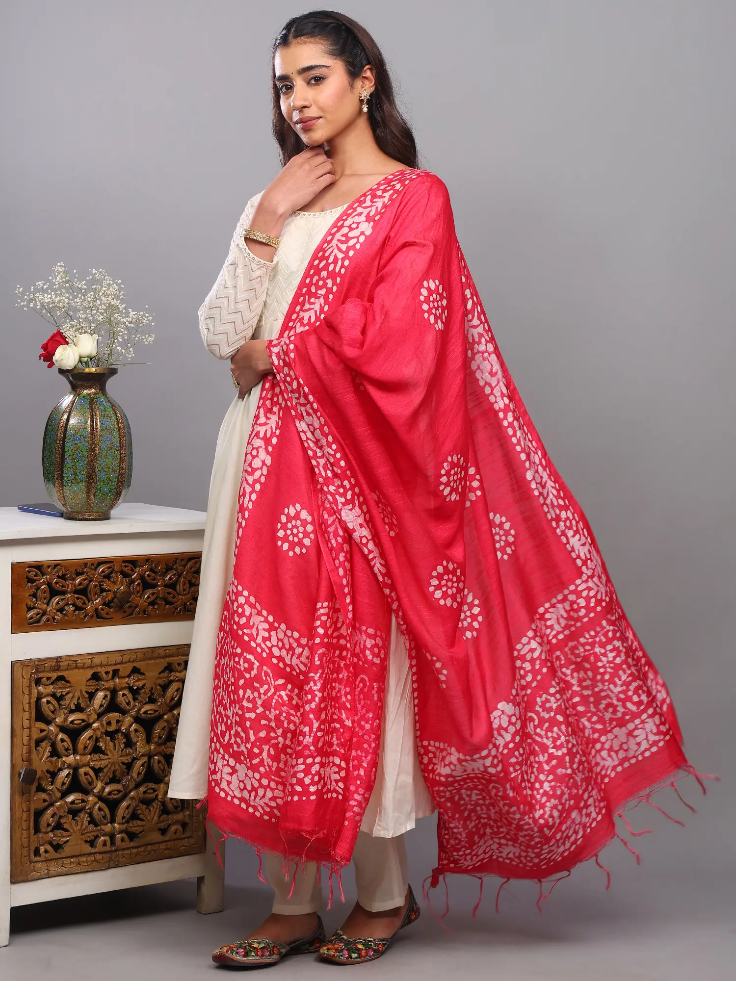 Embrace the Elegance of Telangana: A Batik-Printed Art Silk Dupatta
