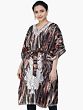 Carry the air of elegance and effortless charm with this beige and black short-printed Kaftan from Kashmir. The eye-catching prints of the Kaftan, with the soft chiffon fabric create a chic look, which is given a hint of traditional beauty by the Aari embroidery that beautifies the piece with its bold and contrasting appeal.
