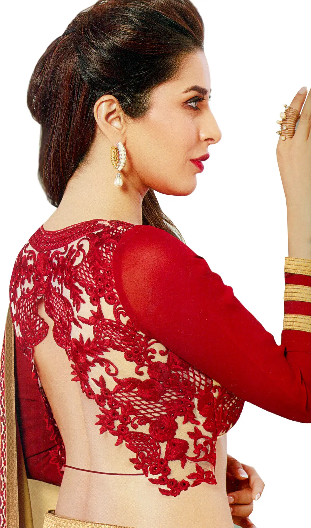 Unveil timeless elegance with our Beige and Red Designer Sari. The subtle beige hue of the saree serves as a canvas for the intricate patch border, exuding understated charm. The showstopper is the bright red blouse, adorned with intricate embroidery, creating a stunning contrast against the saree's subtlety. This fashionable juxtaposition guarantees your ensemble remains a classic for decades. The drape epitomizes the balance of tradition and modernity, as well as the fusion of boldness and grace. With each wear, you embrace a fashion statement that transcends trends, ensuring you radiate sophistication and style for years to come.
