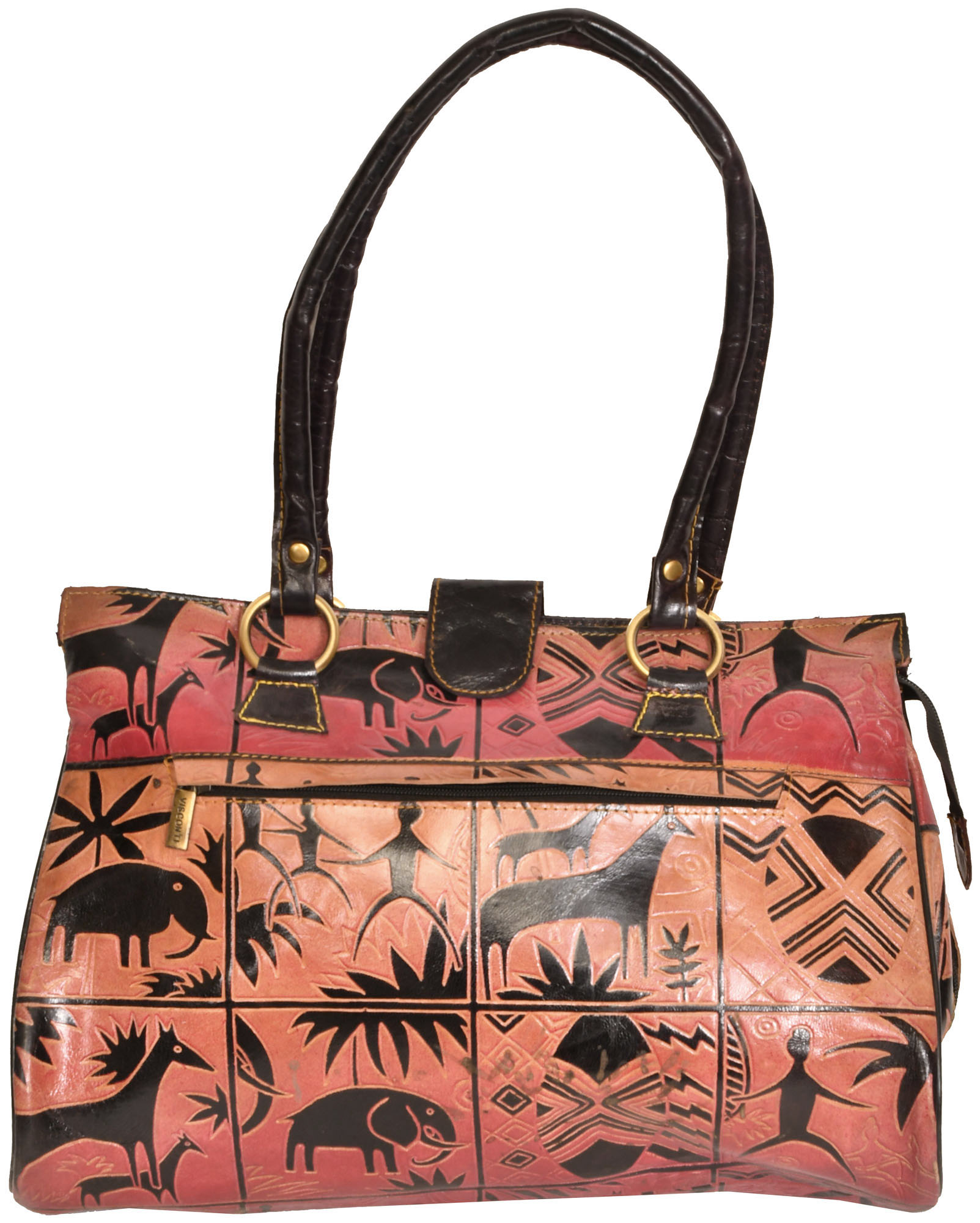 Mars-Red Elephant Print Shantiniketan Leather Hand Bag