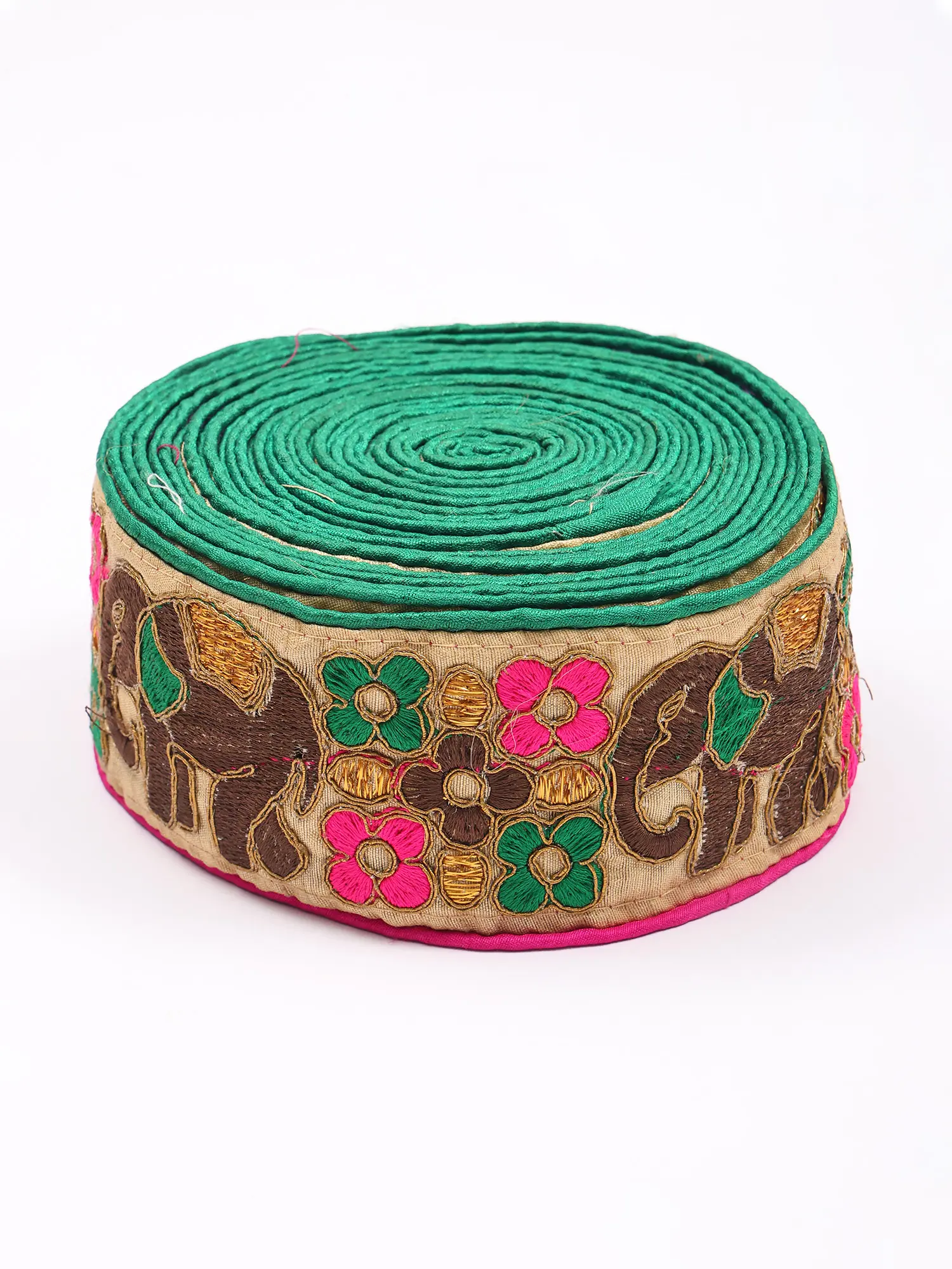Multicolor Thread-Embroidered Fabric Border with Mirrors