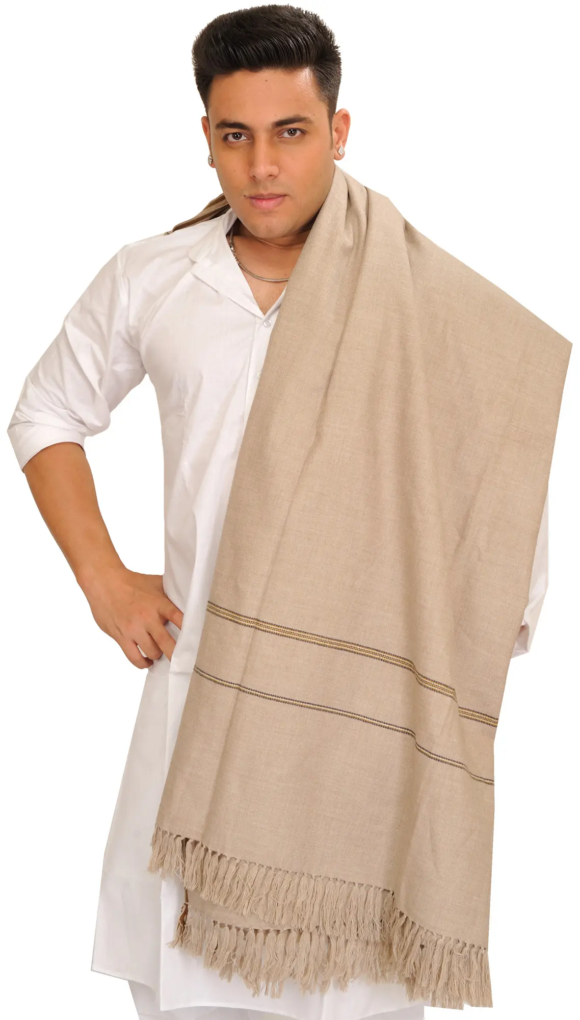 Men's Dushala Shawl (Lohi) with Stripes in Self Weave from Kullu