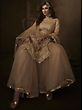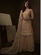 Beige Soft Net Sharara Suit with Sequin, Thread, Mirror Work and Soft Net Dupatta