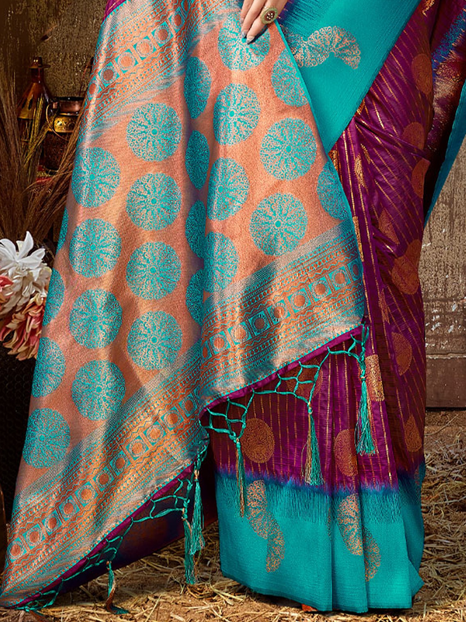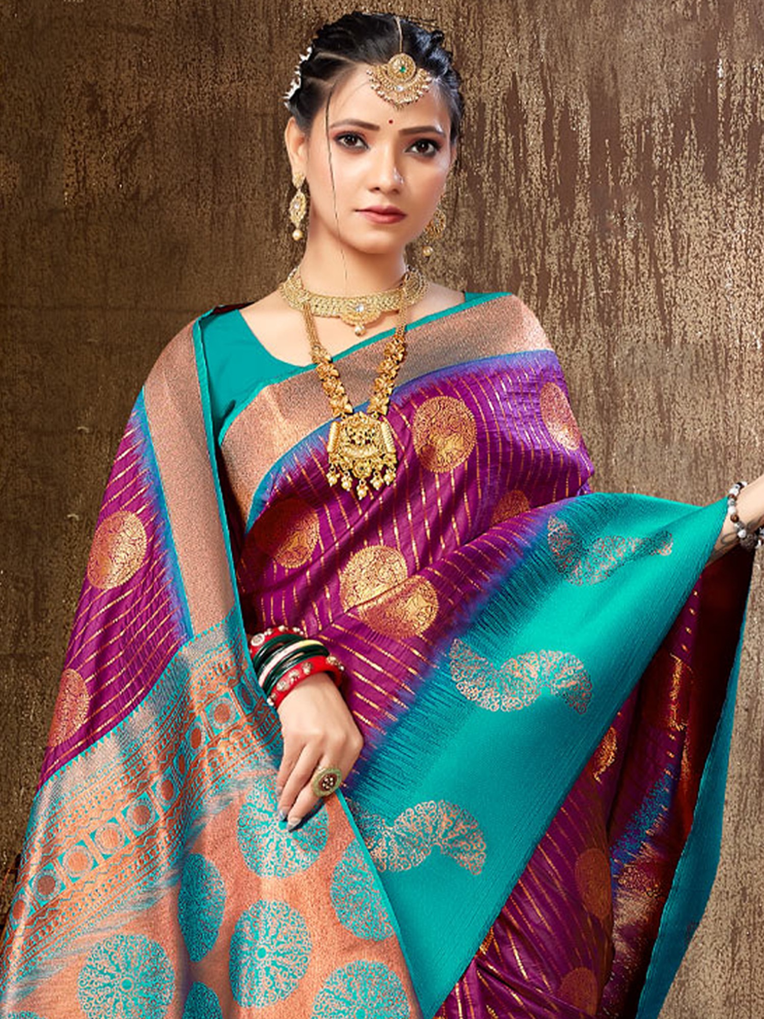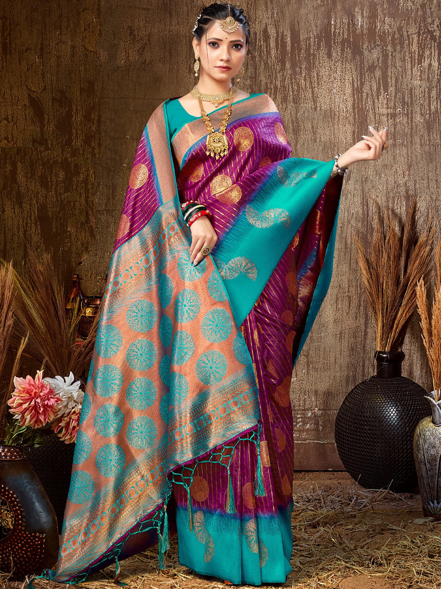 Banarasi Art Silk Dupatta with Zari Woven Golden Floral Bootis and Contrast Border