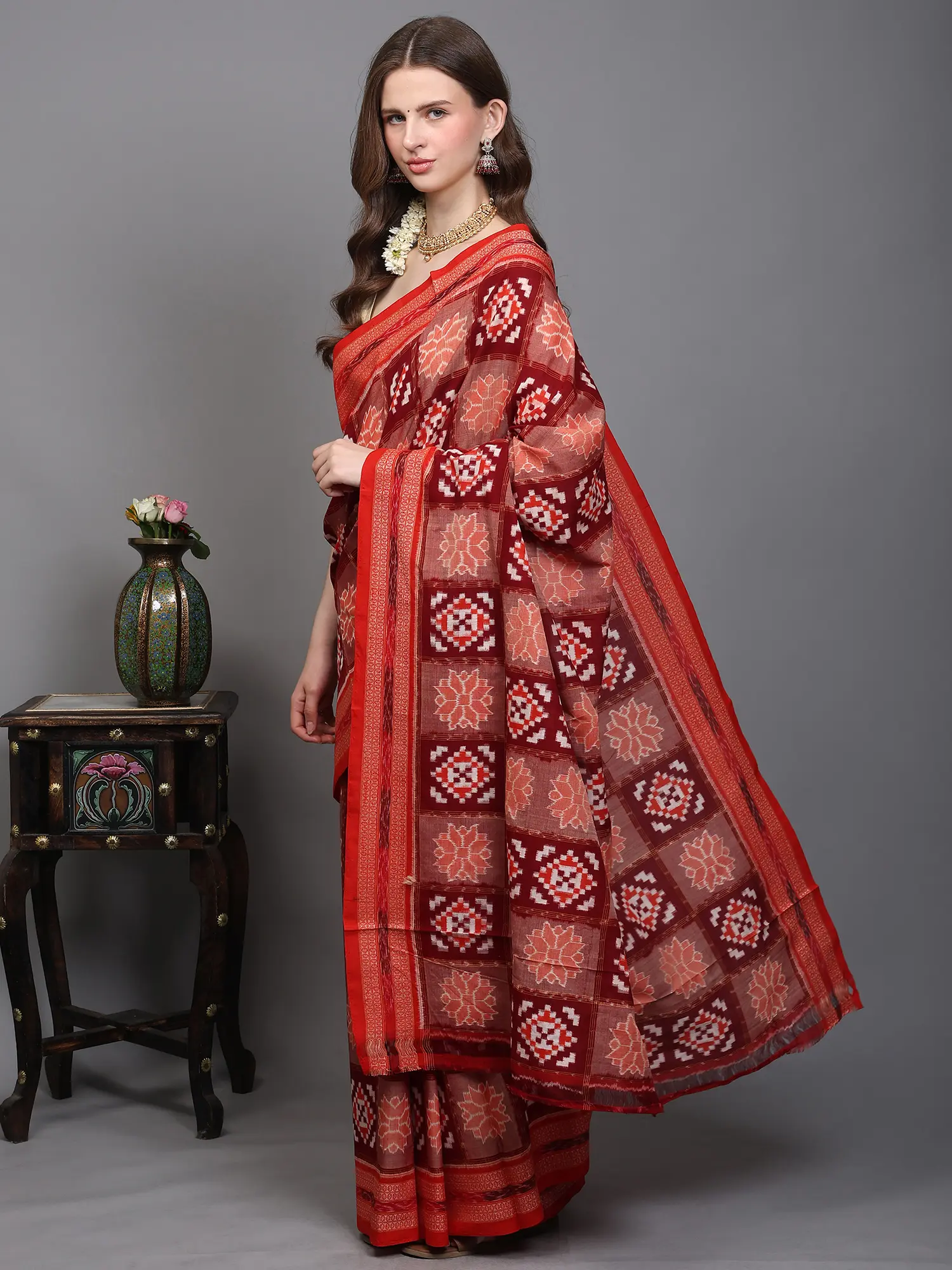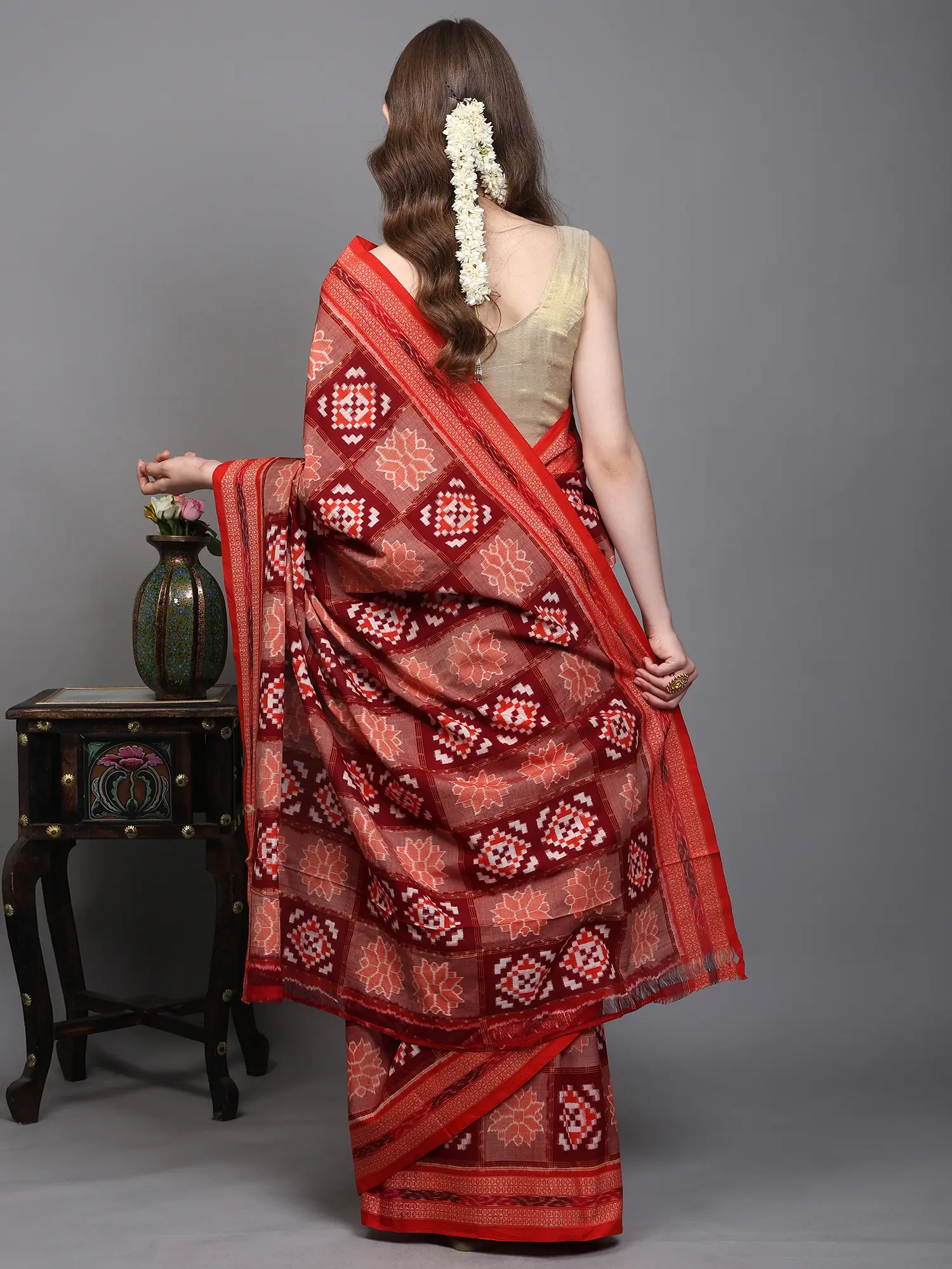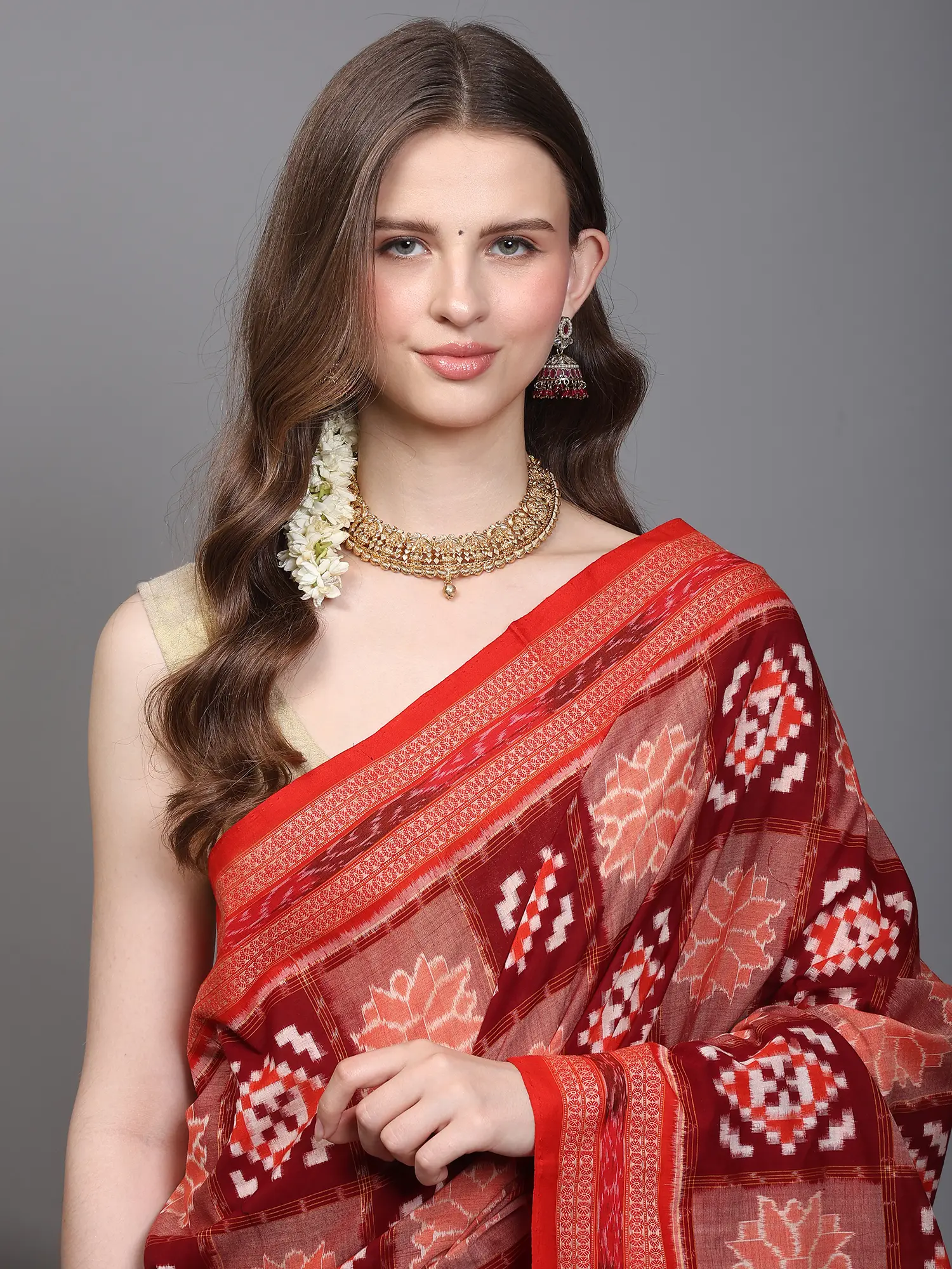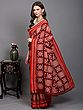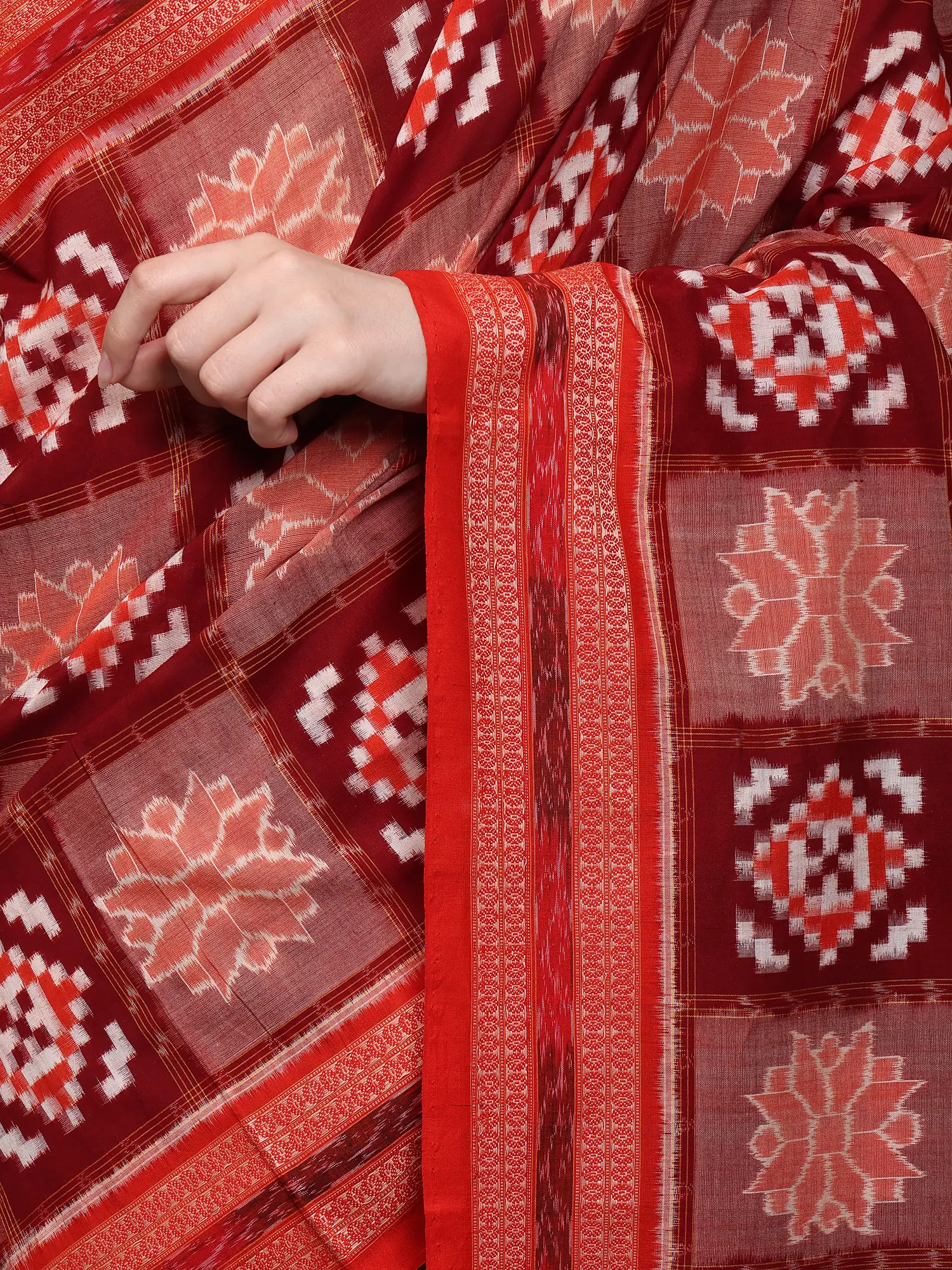 Aurora-Red Authentic Double Ikat Saree Hand-woven in Pochampally Village