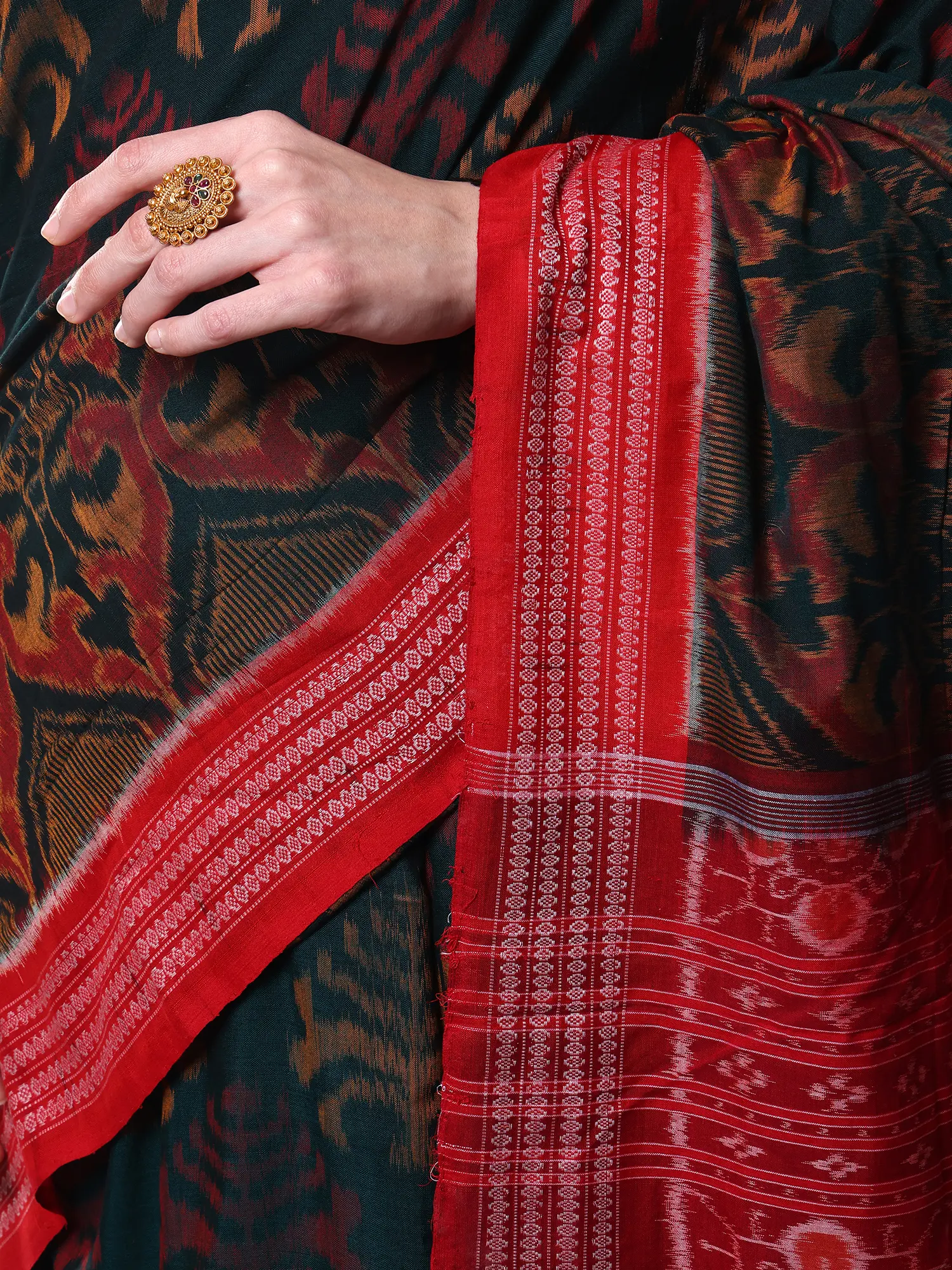 This creation hails from Sambhalpur, a region renowned for its centuries-old Ikat weaving heritage. The distinctive styles and motifs are deeply rooted in the local culture, reflecting a profound connection to nature and tradition. Wearing this textile is not just about adorning yourself; it’s about carrying a piece of this rich cultural legacy forward, connecting you to a lineage of skilled artisans and their enduring artistic expression. It’s a wearable piece of history.