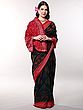 Racing-Red Georgette Saree with Golden Thread Woven Bootis and Floral Border