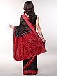 Cactus-Flower Pure Cotton Ikat Handloom Saree with Woven Fish Wide Border and Lady Figure Motifs from Sambhalpur