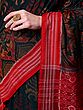 Tawny-Port Pure Cotton Ikat Handloom Saree from Sambhalpur with Woven Fish-Peacocks Wide Border