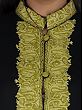 Black and Antique Gold Kashmiri Jacket with Aari-Embroidered Paisleys