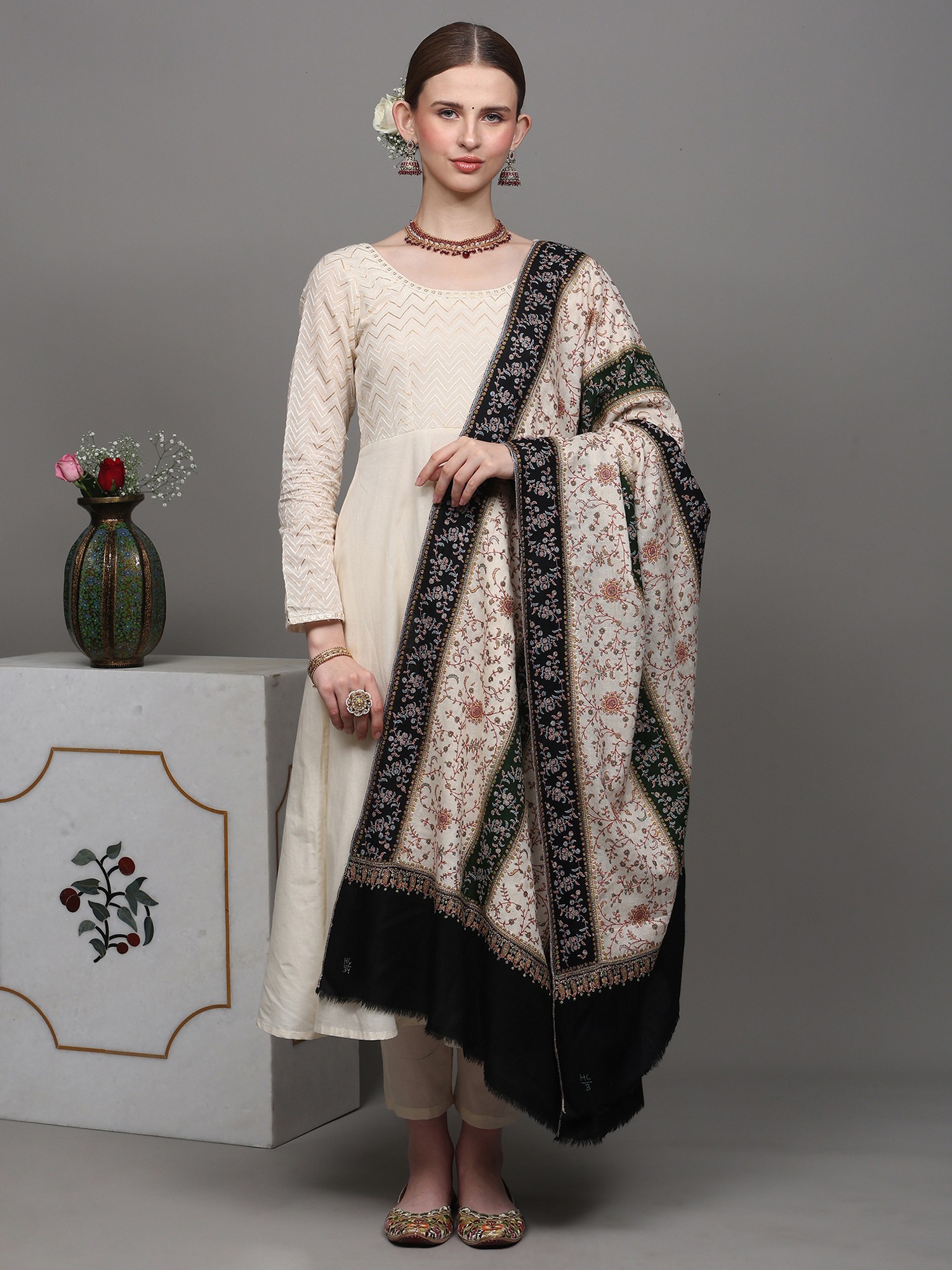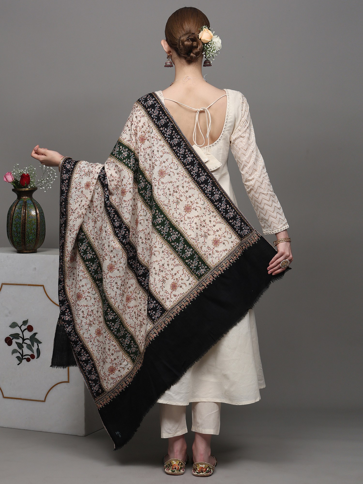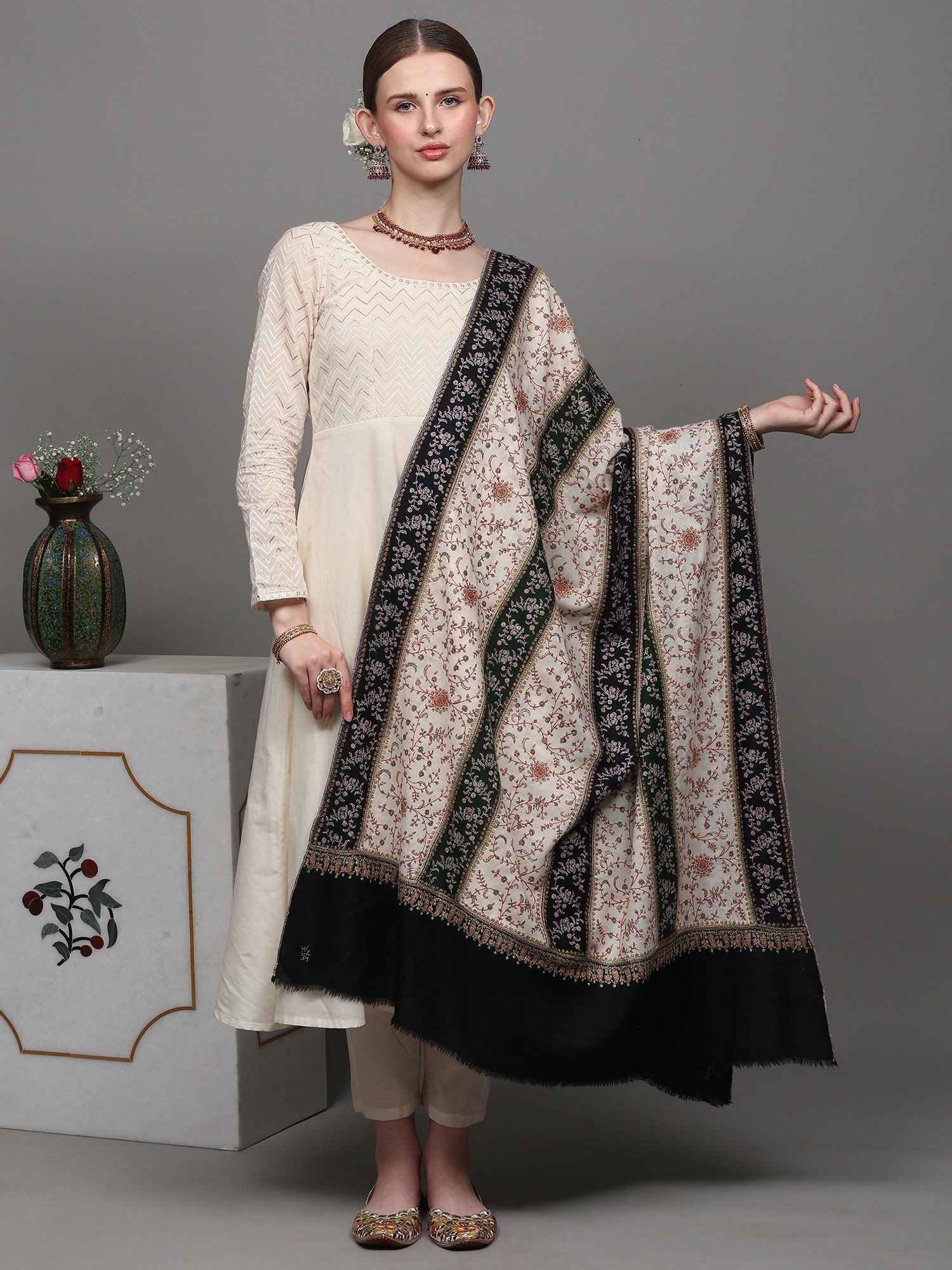 Adorned with intricate Multi-colored Detailed “Kalamkari Embroidery” (Traditional Indian art form, originated in Andhra Pradesh), this Pashmina Shawl is a tapestry of elegance and craftsmanship. Crafted from the finest Cashmere, it envelops you in unparalleled softness and warmth. Each thread whispers tales of artistic mastery, as the Kalamkari motifs dance in a symphony of vibrant hues. It is not just a shawl; it is a masterpiece, a canvas of culture, and a tribute to the enchanting beauty. Draped around your shoulders, it becomes a portal to a world where tradition meets modernity, where warmth meets style.
