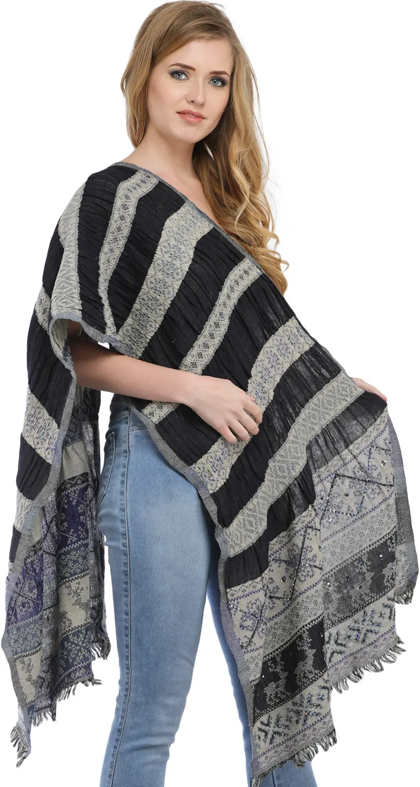 Scarf with Kinnauri Embroidered Border in Multicolor (Unisex) from Kullu