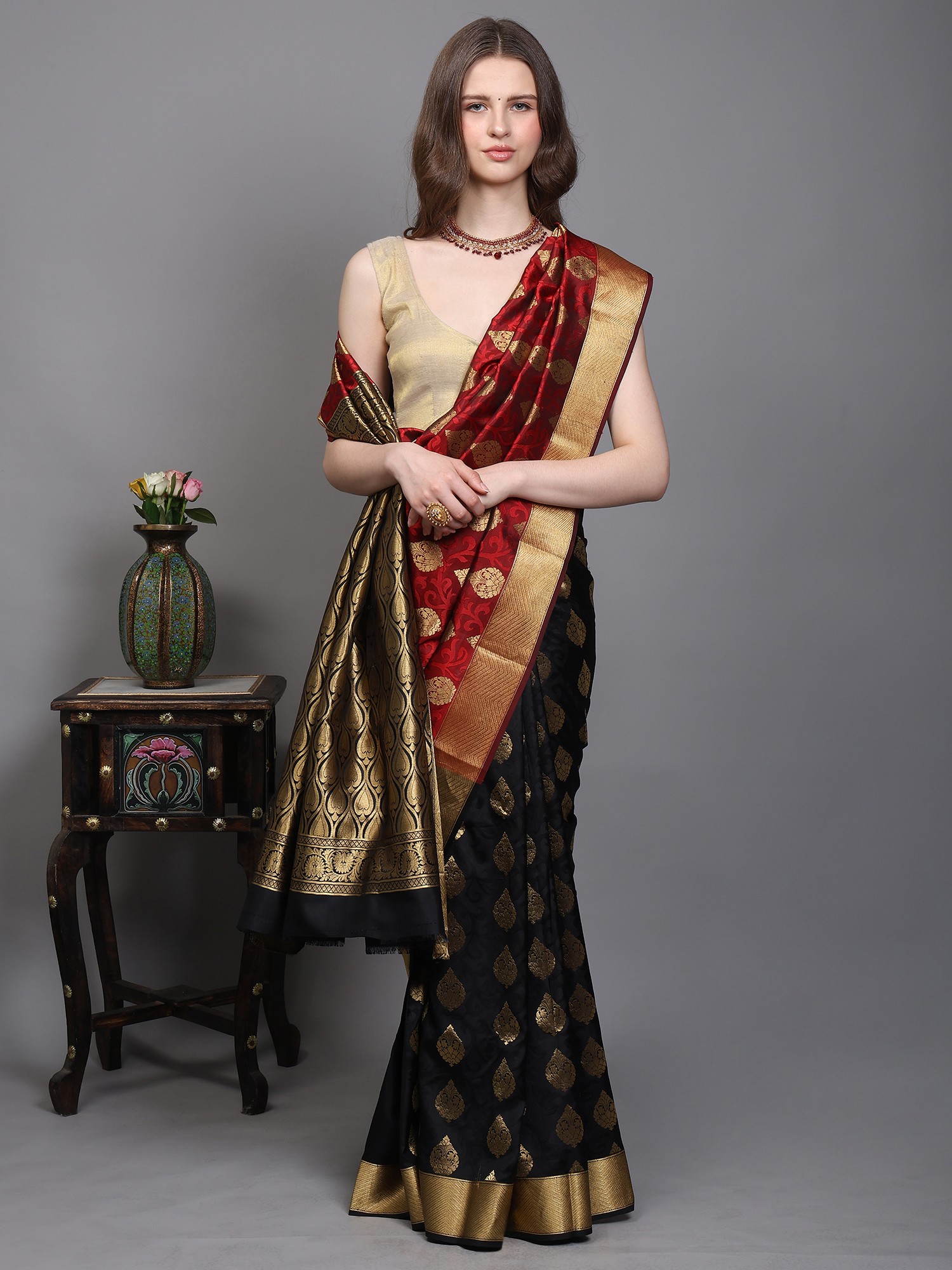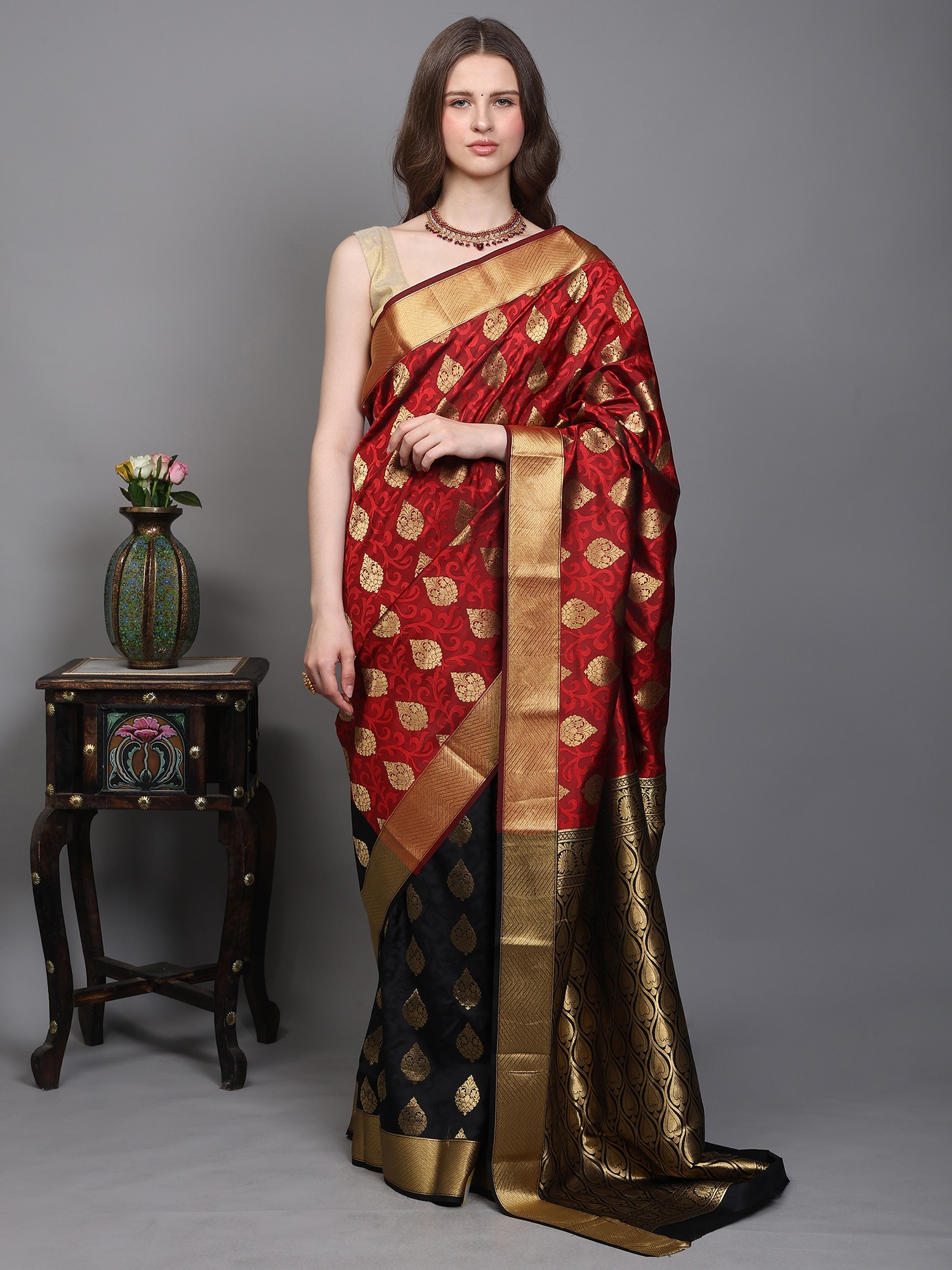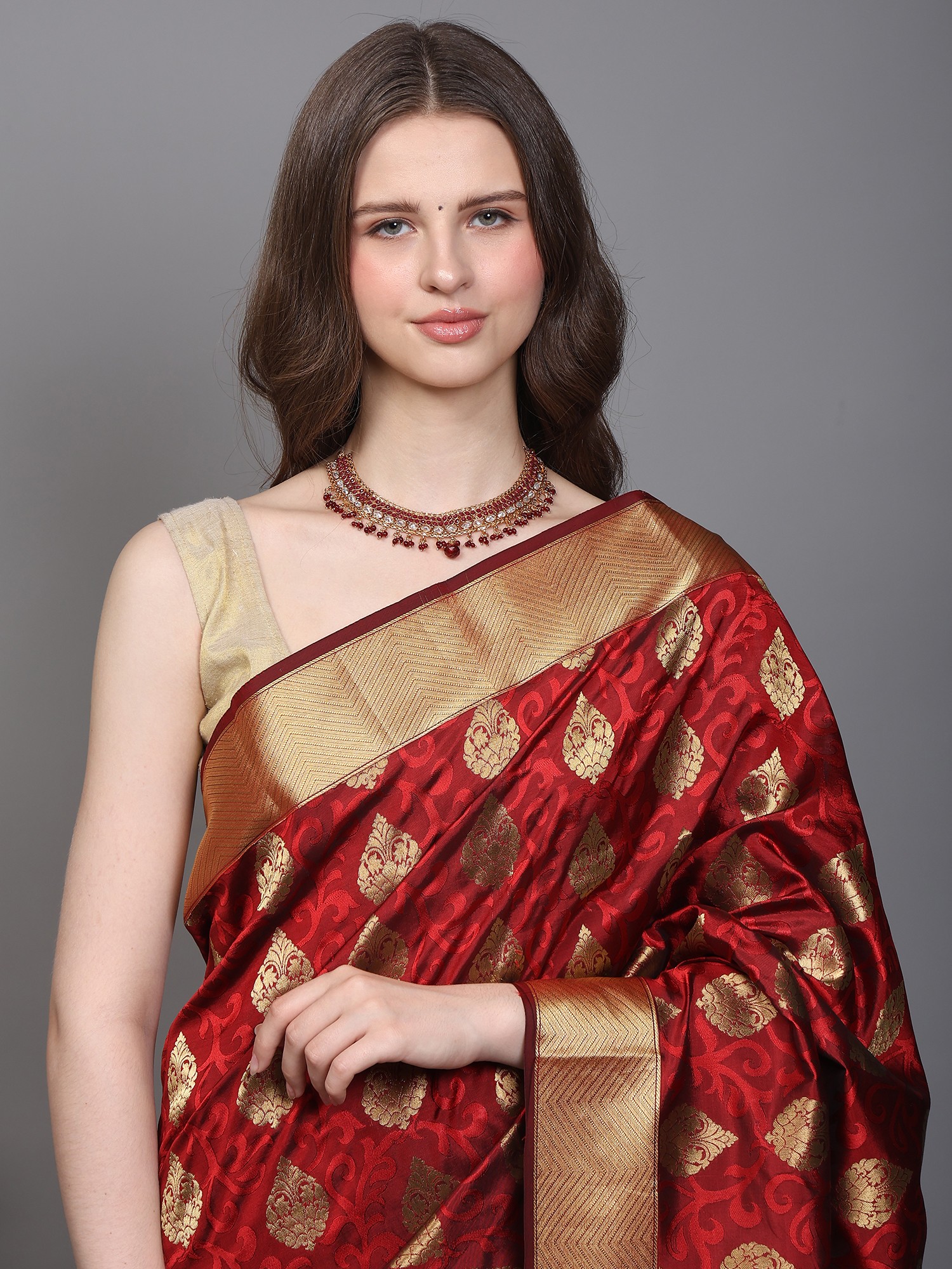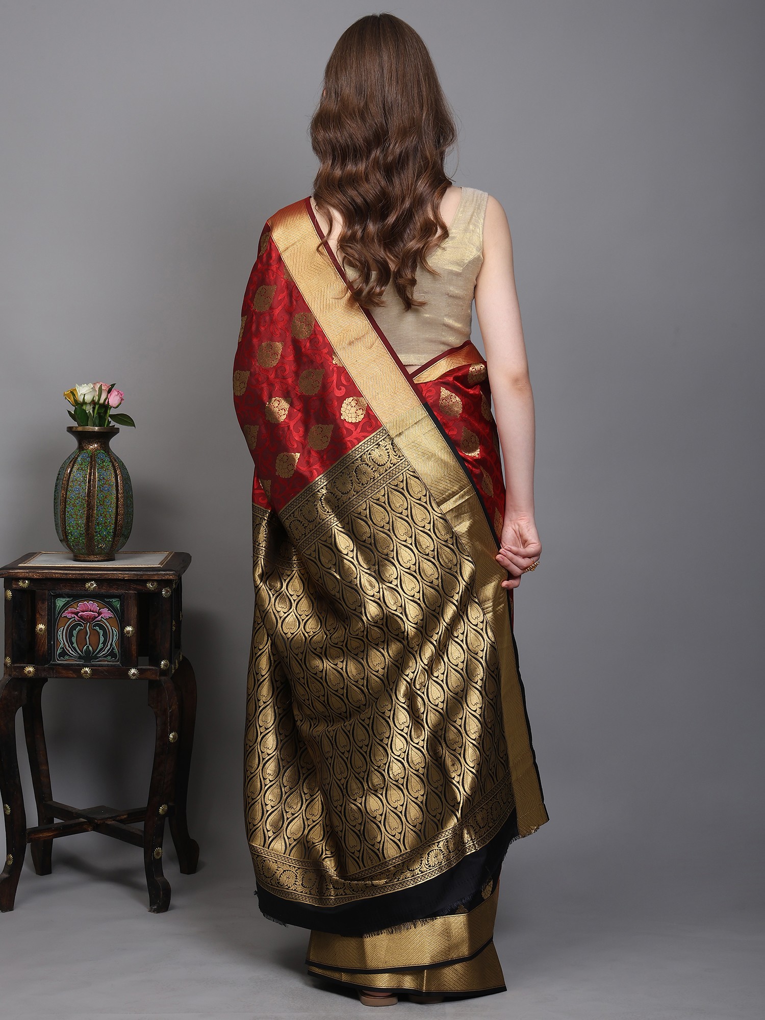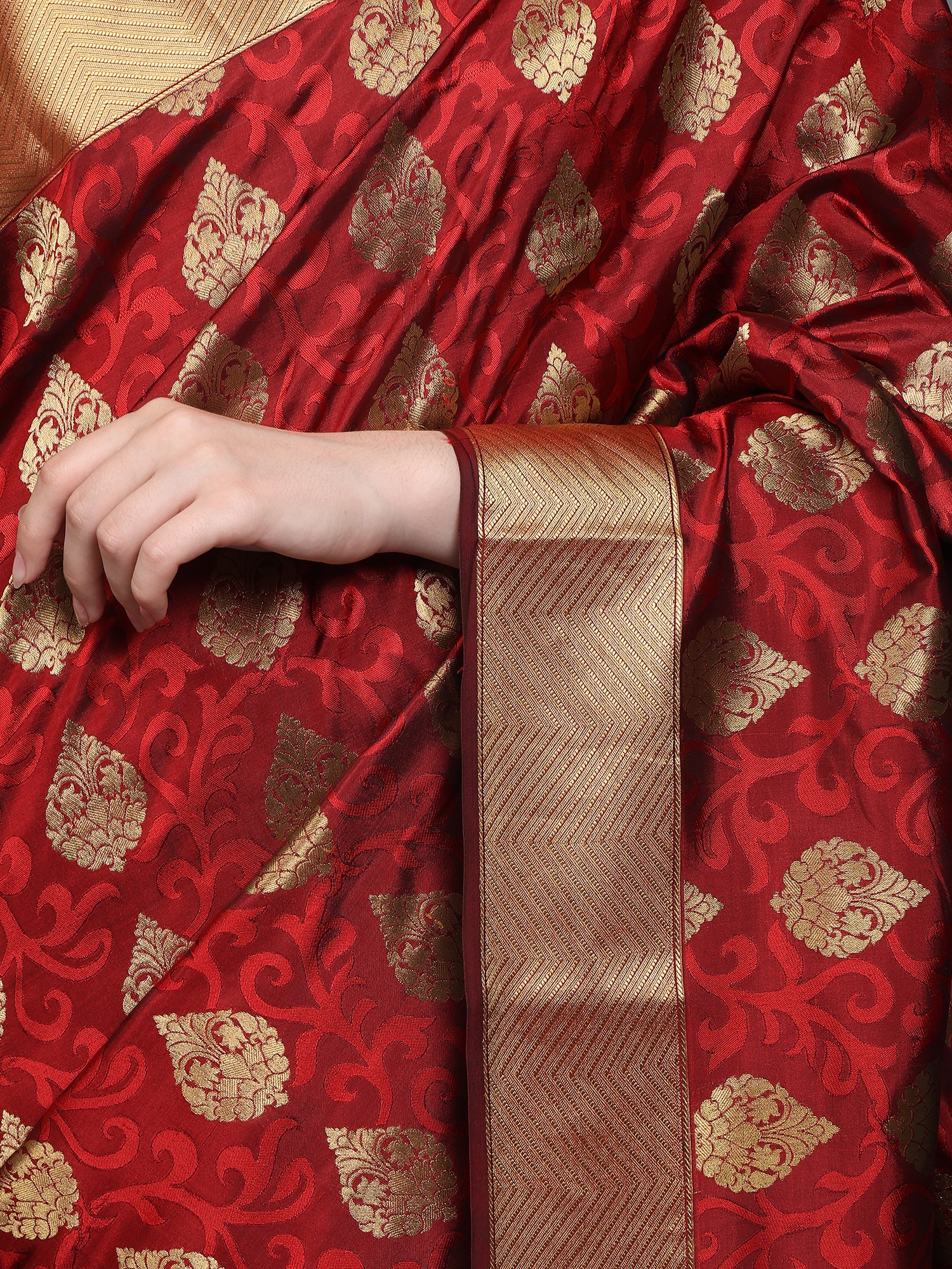 Faded-Rose Saree from Bangalore with Woven Motifs in Copper Colored Thread