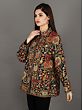 Black-Beauty Pure-Wool Short Jacket From Kashmir With Giant Aari-Embroidered Flowers
