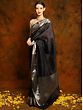 The Black Chanderi Silk Banarasi Saree, adorned with a resplendent Golden Zari Thread Border and a richly woven Pallu featuring Paisley Butta, exudes a timeless elegance. The sheer grace of the Chanderi silk fabric is further enhanced by the intricate craftsmanship of traditional Banarasi motifs, meticulously woven into the border and the pallu. The prominent paisley motif, serving as the crown jewel of this graceful drape, adds a touch of regal opulence, elevating the ensemble to a masterpiece of artisanal finesse and sophistication. Embrace the timeless allure of this saree, perfect for those seeking to make a statement of refined grace and cultural richness.