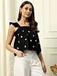 Black Cotton Floral Print Work And Sleeveless Fancy Attractive Short Top