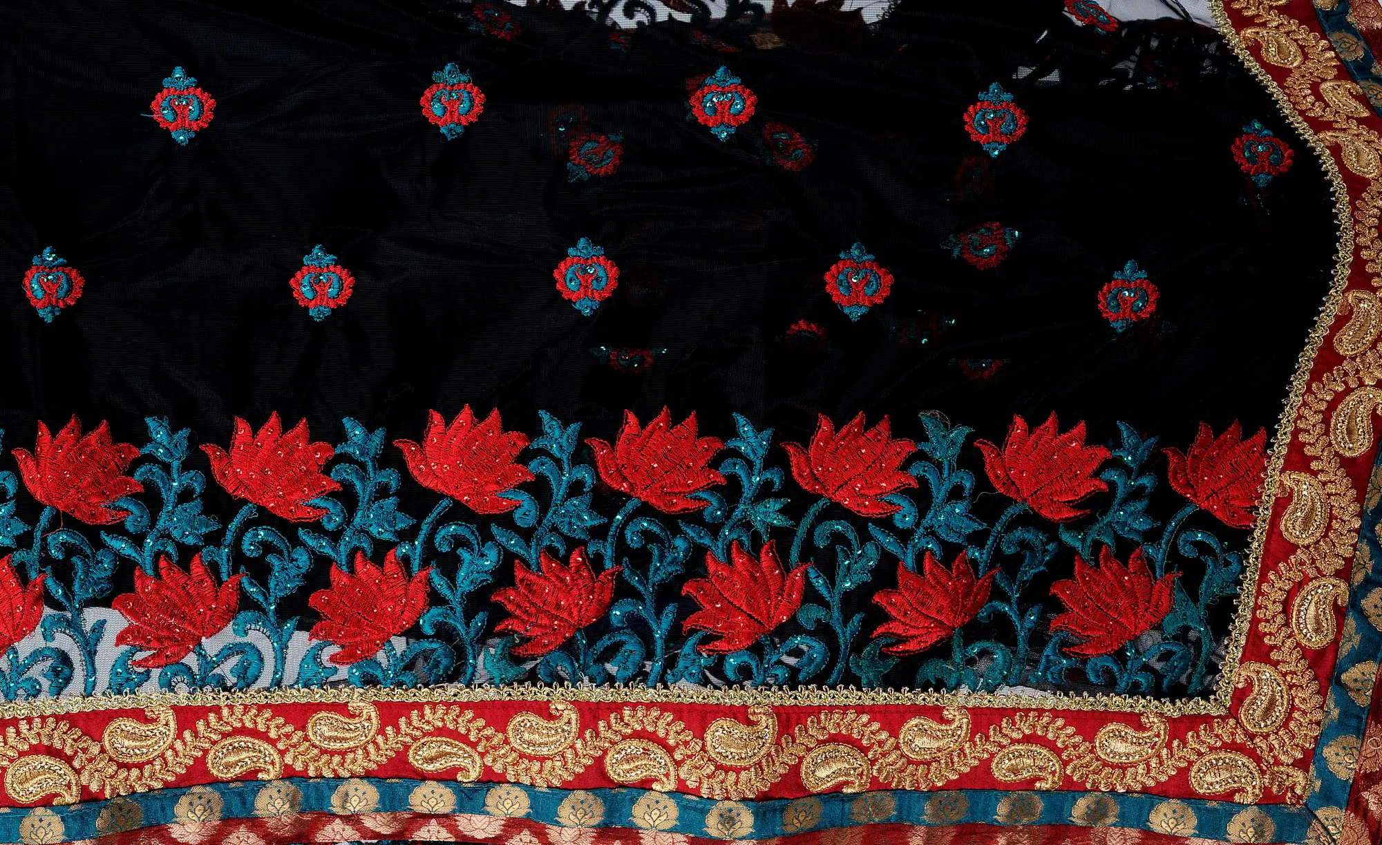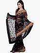 Jet-Black Wedding Saree with Embroidered Sequins and Flowers