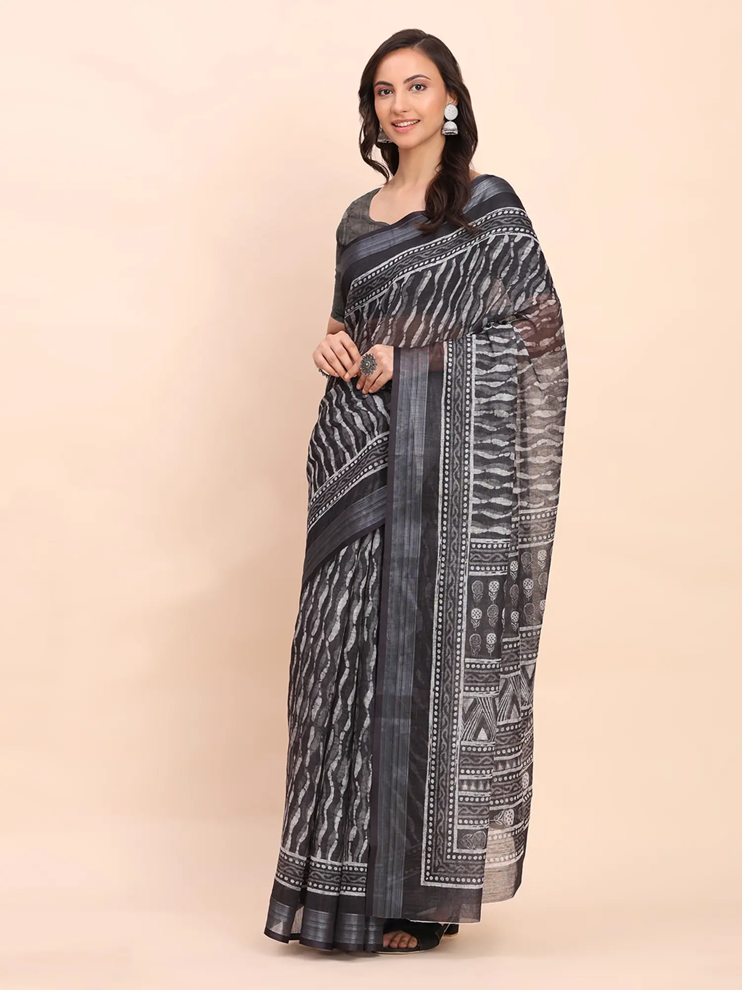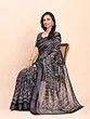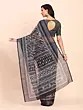 Caviar-Black Jamdani Saree from Bengal with Woven Bootis and Striped Border