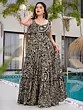 Long Fish-cut Gown from Kashmir with Aari Embroidered Black Bootis on Neck