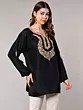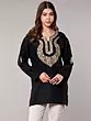 Black Kashmiri Short Kurti with Aari Embroidered Flowers on Neck