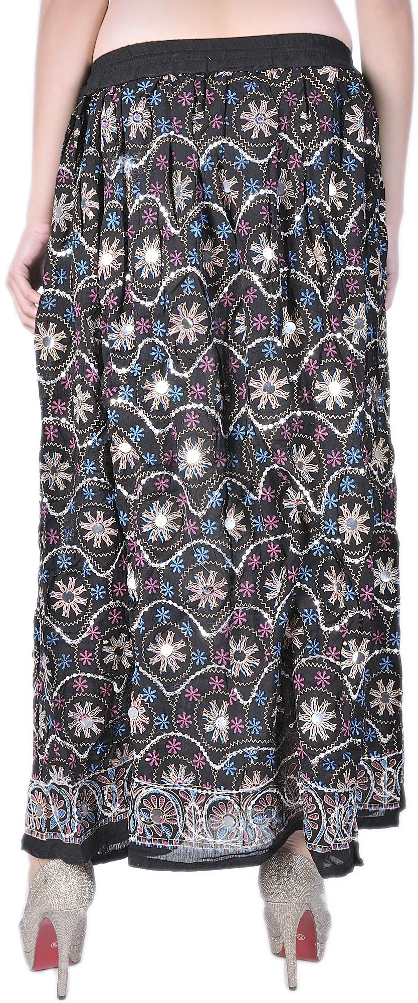 Made from luxurious rayon, this long skirt drapes gracefully, accentuating every movement with a touch of allure. This skirt is an embodiment of confidence and style, a symbol of eternal beauty and charm. Whether you are dancing under moonlit skies or strolling through city streets, let this skirt be your statement, your muse, and your moment of magic.