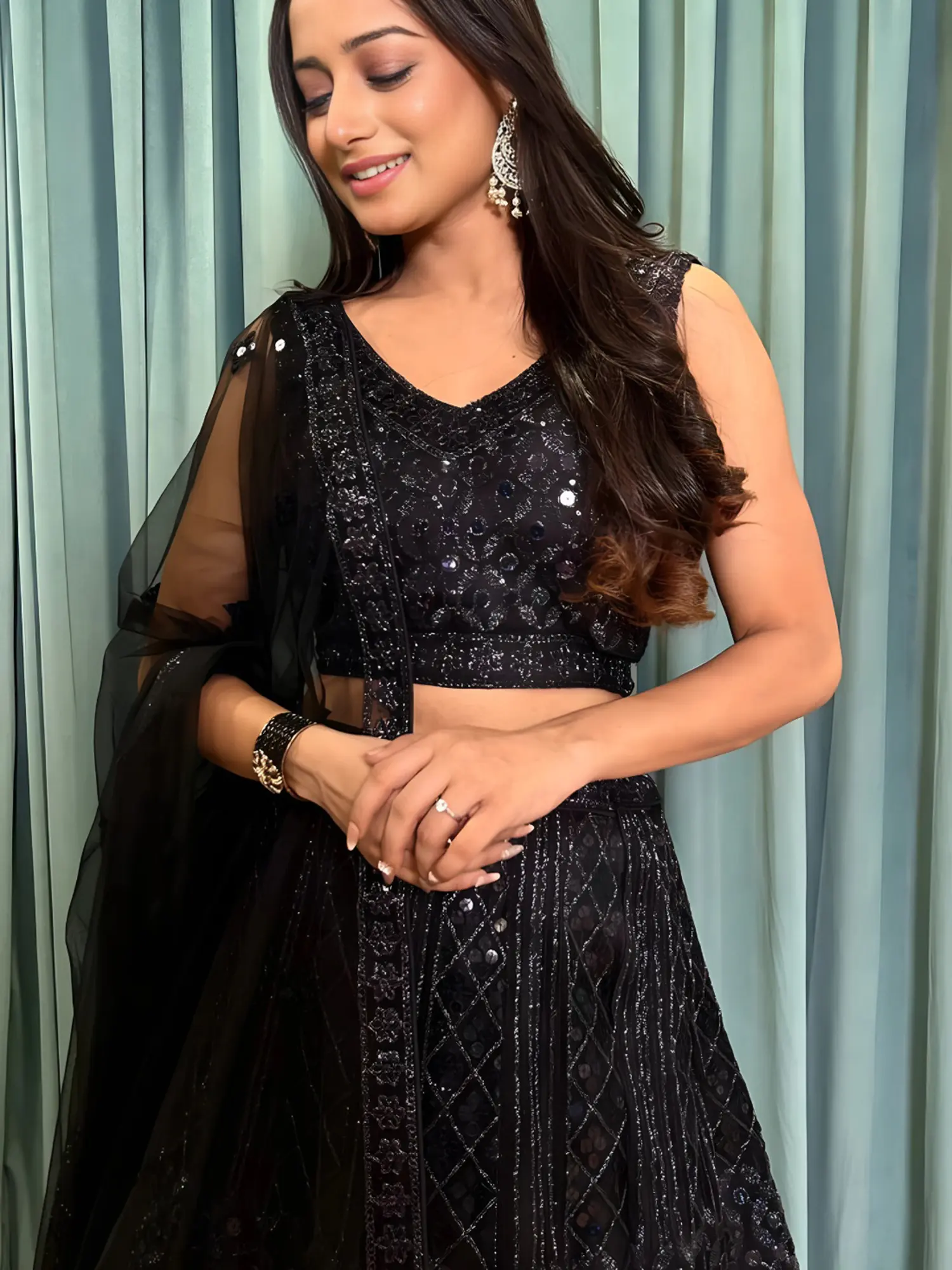 Georgette Lehenga Choli With Dupatta Adorned With Intricate Sequin Zari And Embroidery Work