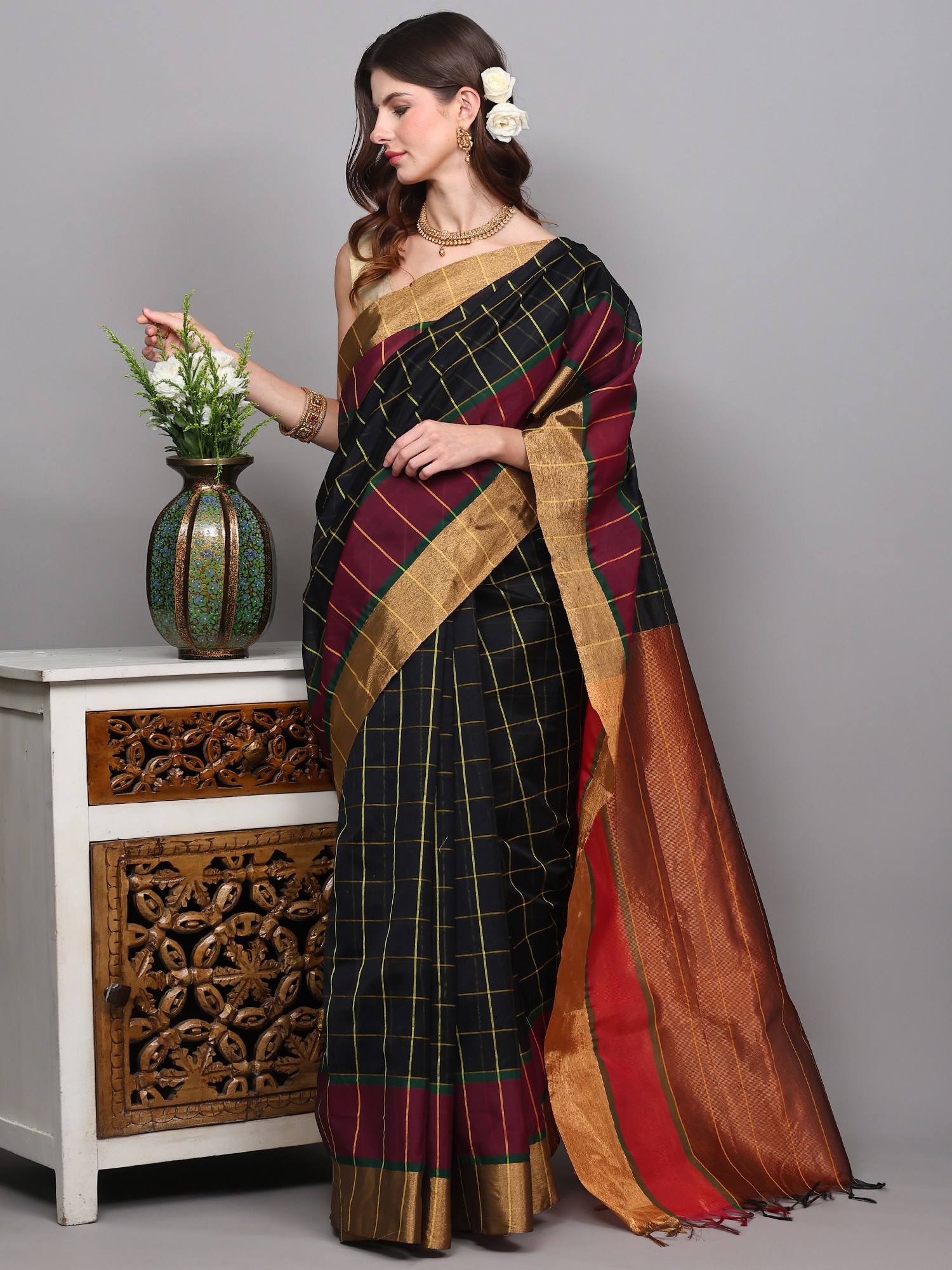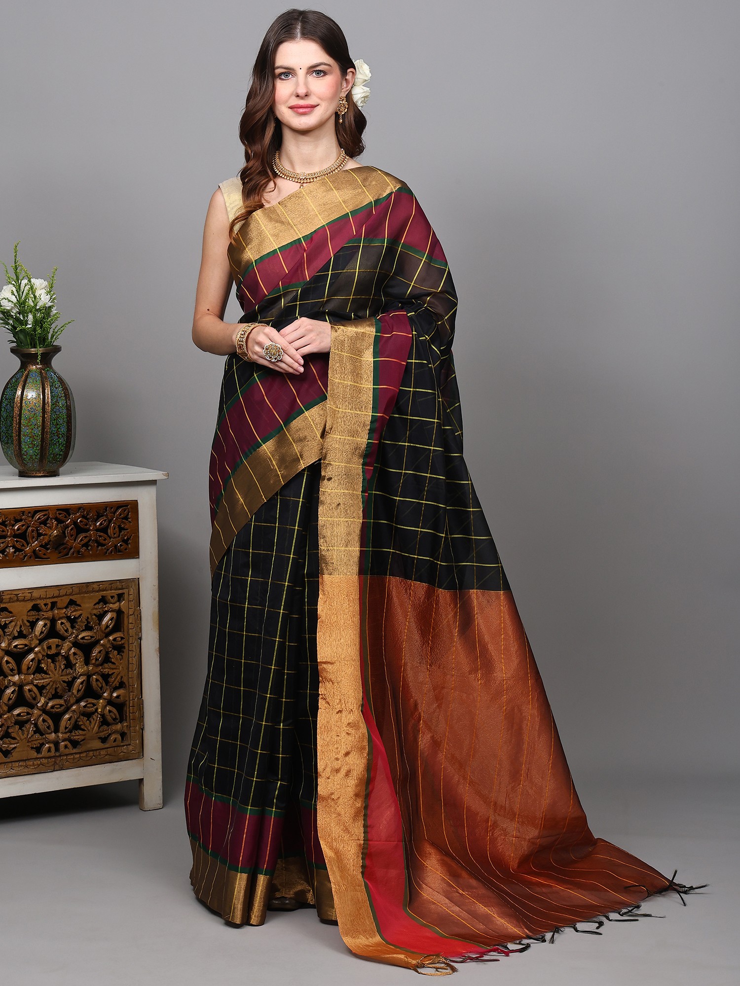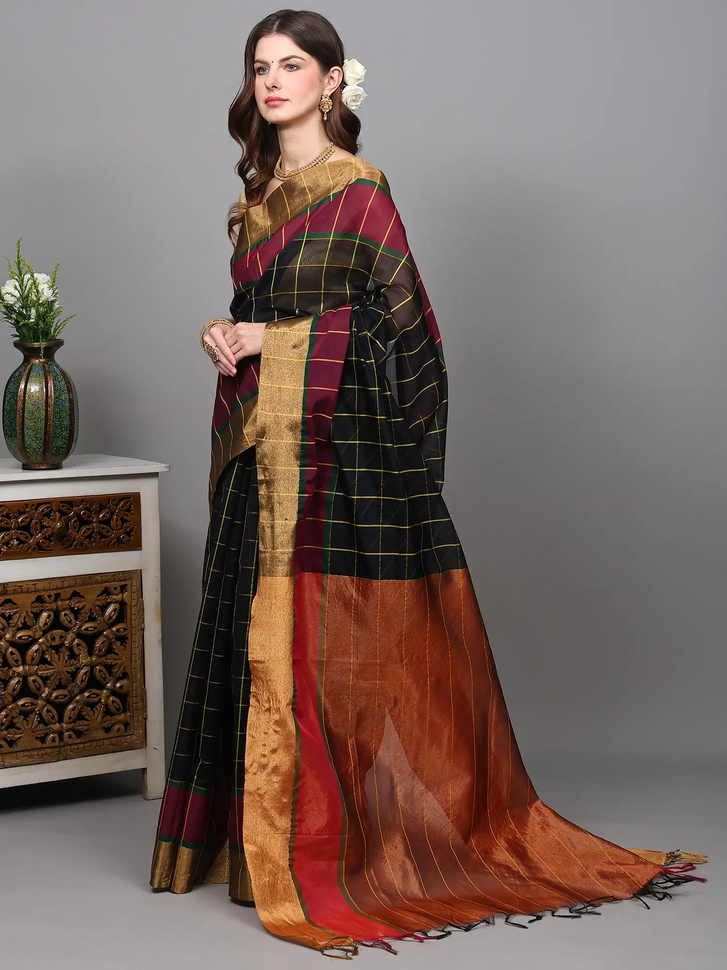 Black Designer Saree with Mokaish Work and Zardozi Patch Border