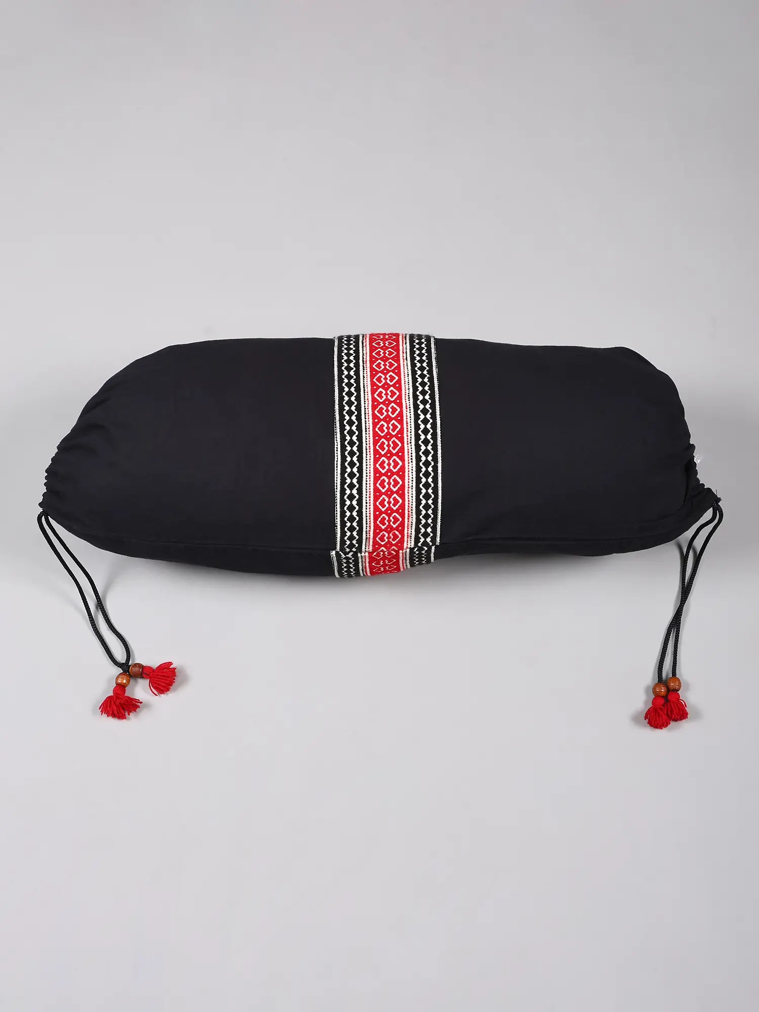 Black-Onyx Toda Embroidered Bolster Cover with Tie-Up Closure