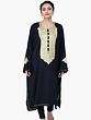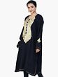 Phiran is the traditional Kashmiri cloak that both men and women can wear. The only difference both these Phirans is the level of ornamentation. The Phiran for women has a lot of aari, sozni, and tilla work on it that elevates the look. This Black Phiran from Kashmir with Zari Embroidery on Neck Borders is an apparel specially designed to elevate the winter fashion game for women. The neck of the Phiran is beautifully decorated with the golden tilla-aari work. The combination of black and gold is a proven regal combination. This Phiran has a timeless appeal, that maintains tradition, embraced by people worldwide.