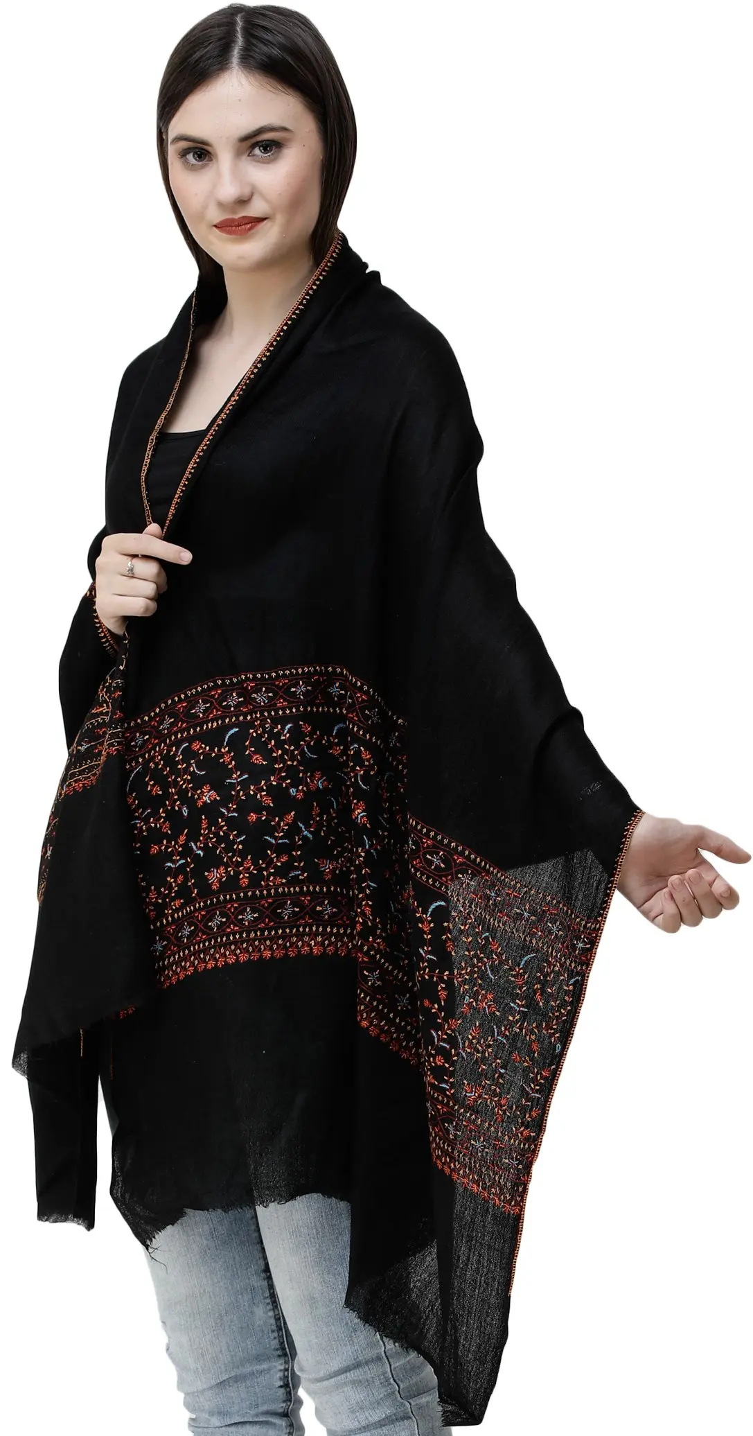 Pure Tusha Shawl from Kashmir with All-Over Needle Embroidery by Hand