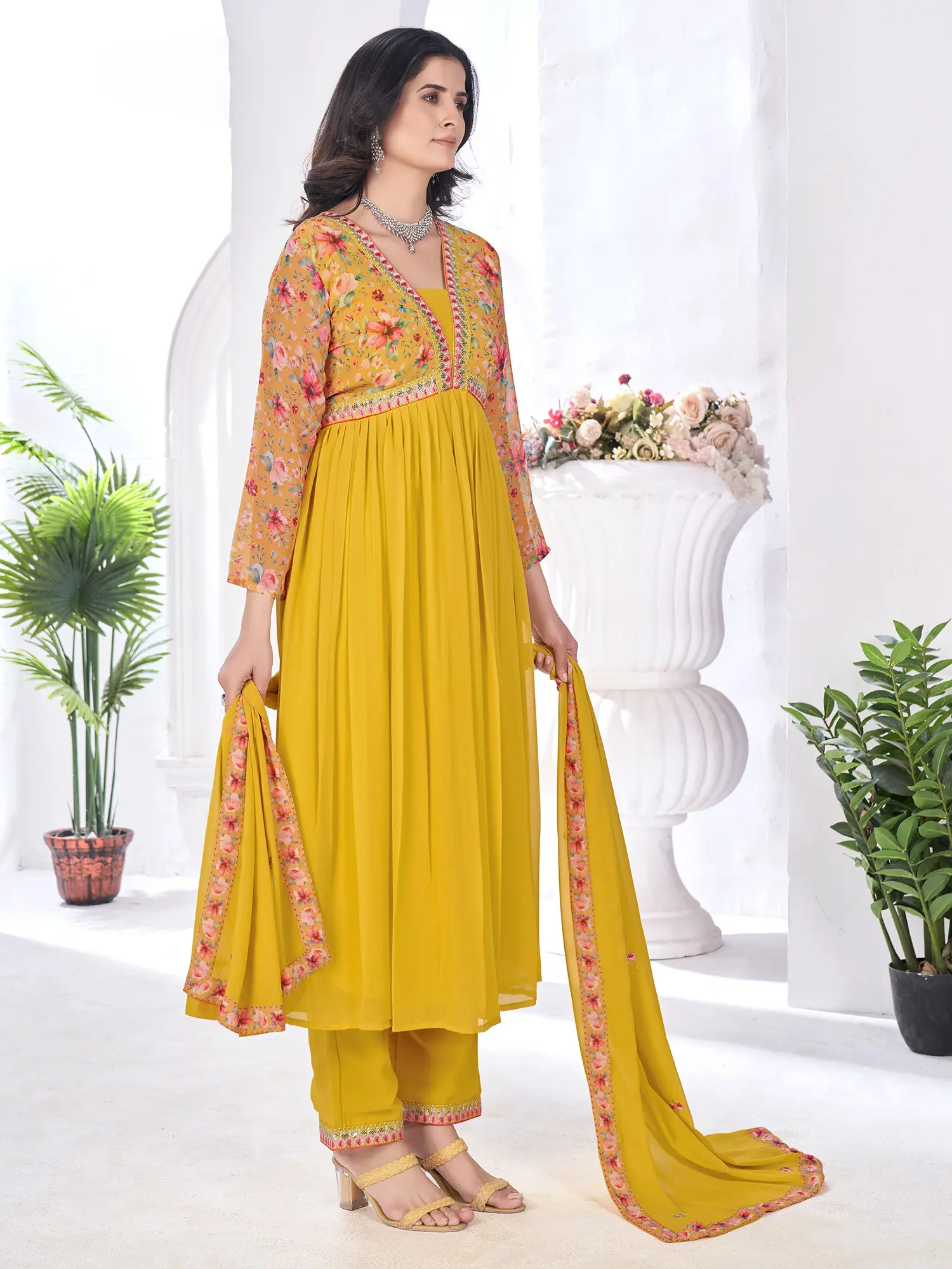 Embrace Radiance with this Blooming Georgette Anarkali Ensemble