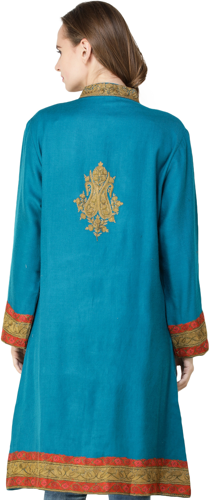 Pure Wool Kashmiri Short Kaftan with Tilla Embroidery on Neck
