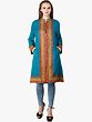 Blue-Heron Pure Wool Kashmiri Phiran with Aari Embroidered Floral Butta